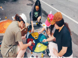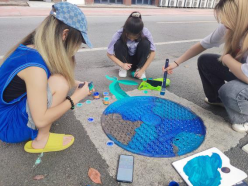 色彩靓丽、风趣活泼的井盖画让平时不起眼的井盖变得引人注目,引来了众多同学驻足观赏,也有人拿起手机进行拍照转发,为此次活动进行宣传打call,大大鼓舞了实践活动成员们的热情。据悉,本次活动所使用的材料均是防雨环保材料,作画图案多为卡通图案,或为创意设计。完成一个井盖画需要四五个同学协作,负责人清理,有人负责调色,有人负责打形,有人负责上色。活动现场组员们团结友爱,相互协助,正是各位同学的辛勤付出,才让每一个井盖成为了独一无二的艺术品,每一个井盖作品都凝聚着同学们的创意和心血。