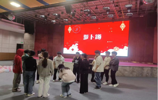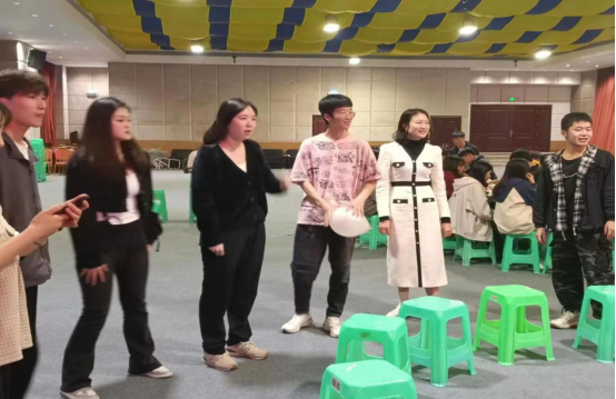 为调动现场氛围,本次活动还组织了老师和同学们一起参与《萝卜蹲》、《抢凳子》、《组队抱团》等小游戏,大家在游戏中放飞自我,在游戏中寻找快乐。台下的同学们更是放声呼喊,为参赛同学加油打气。特别是最后《歌词接力》的决赛环节,一问一答的组织形式瞬间点燃了同学们的求胜欲,活动气氛也达到了高潮。