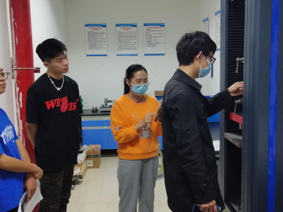 在钢筋拉伸实验中,老师向我们演示了钢筋打点、游标卡尺的测量,详细讲解了钢筋拉伸性能以及拉伸性能的测定方法——实验反映拉力与变形之间的关系。同学们根据实训老师的讲述顺利地完成钢筋拉伸实验报告,同时也在实践中加深了检测知识的学习,为以后投入检测工作奠定坚实基础。