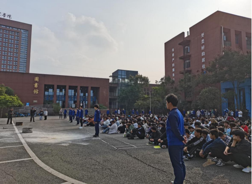 本次活动分为应急演练、安全知识讲解、消防水带使用、灭火器使用、急救知识宣讲以及示范演练等环节。在应急演练环节,随着警报声响起,演练正式开始。各班学生迅速捂住口鼻,低姿快速、有序逃离模拟火灾现场,到安全场地集合。