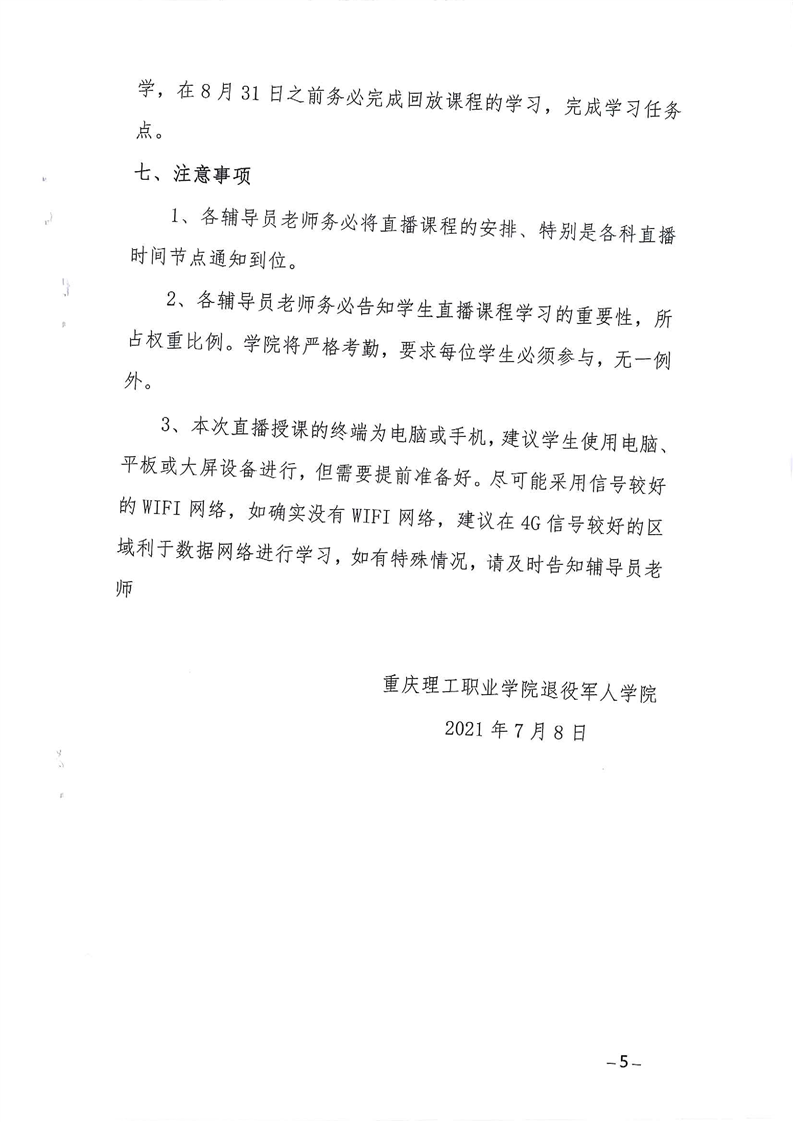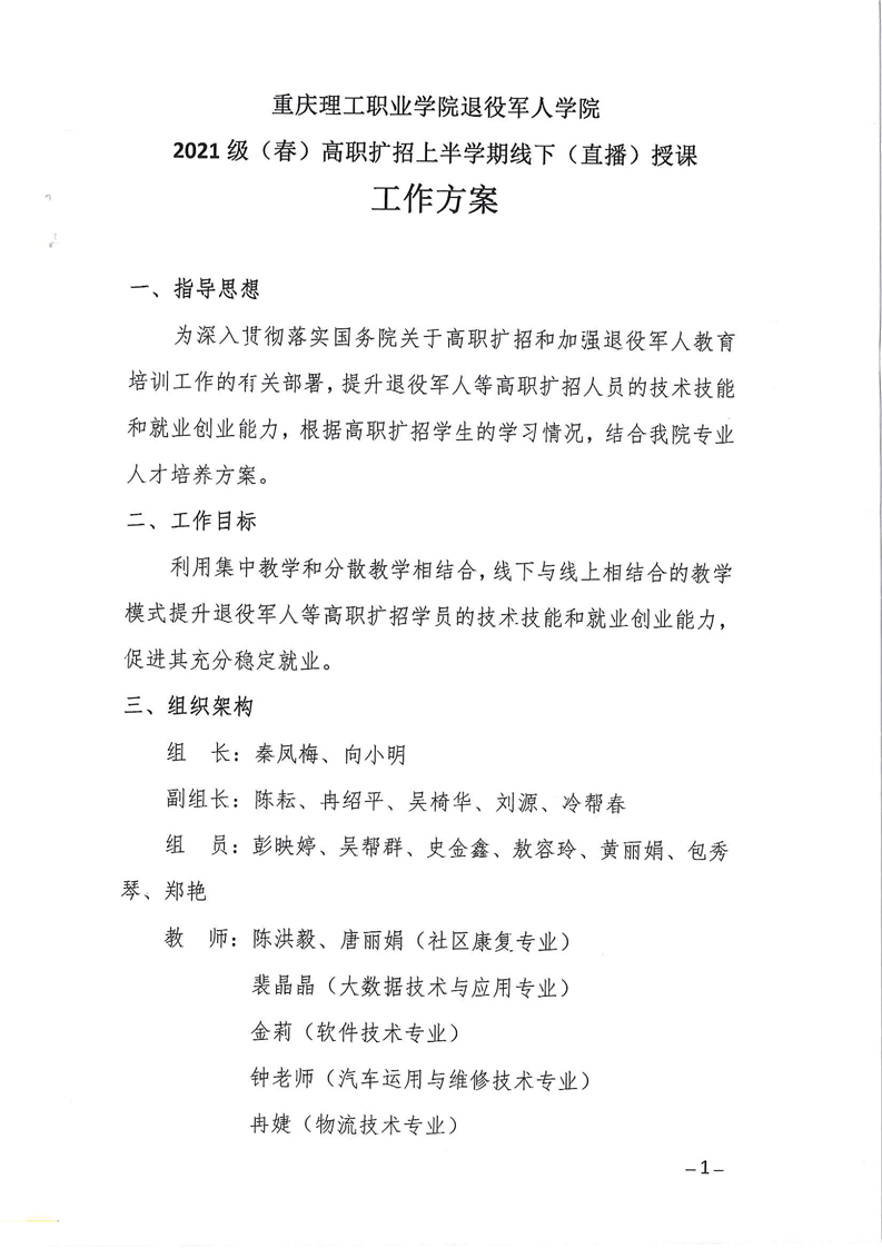 2021级(春)高职扩招上半学期线下(直播)授课工作方案
