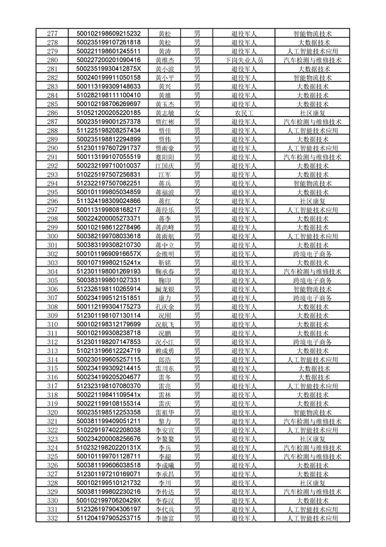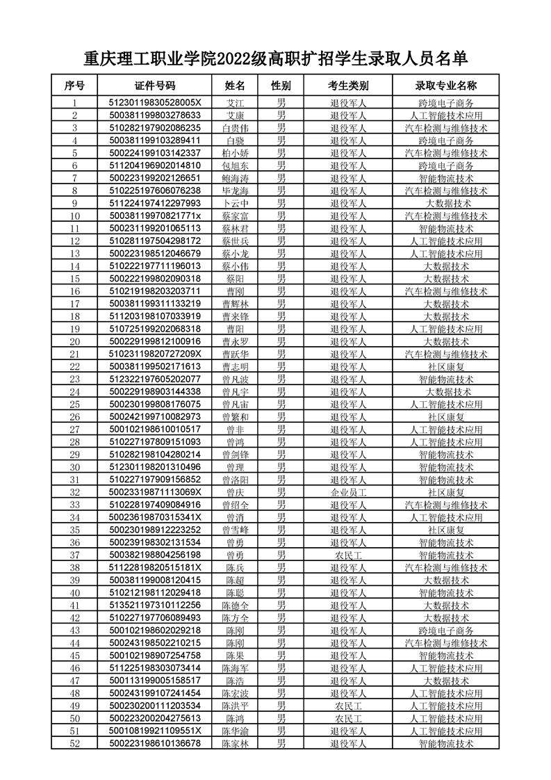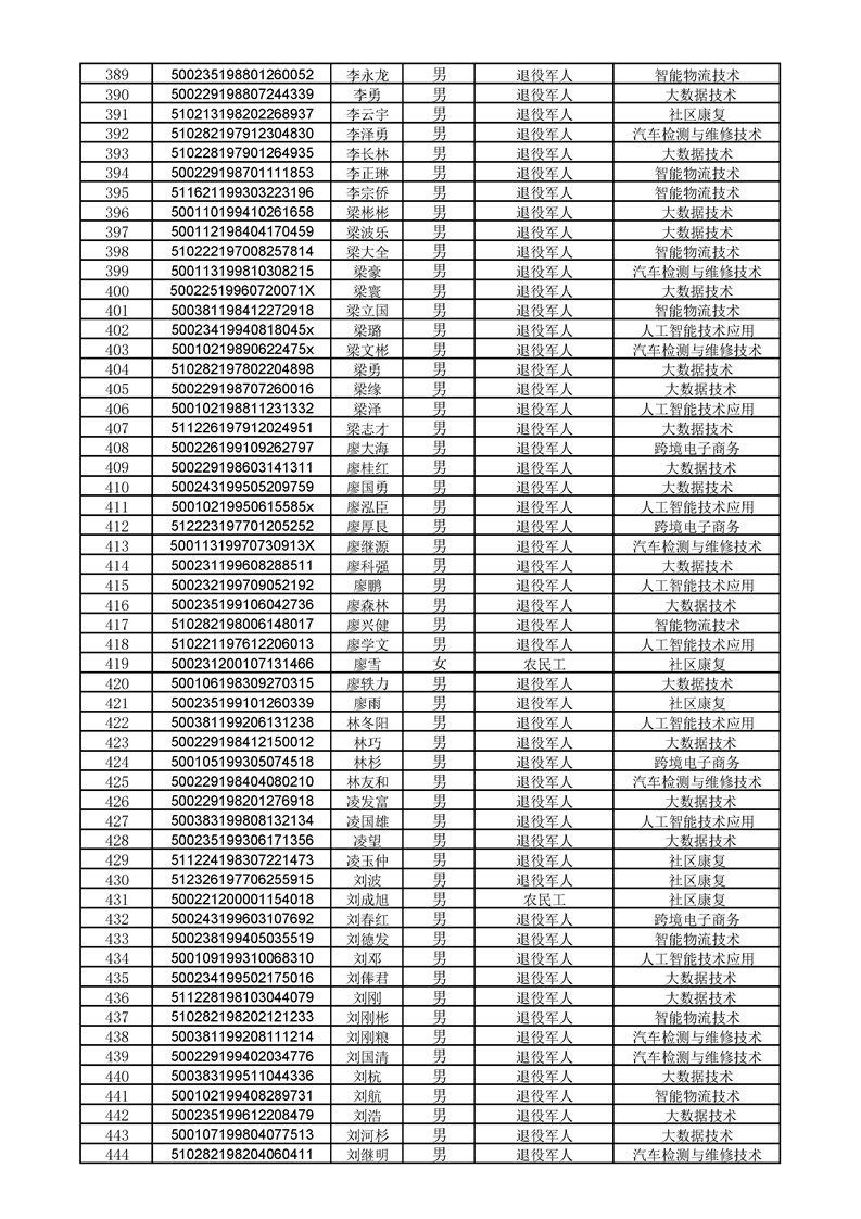 beat365英国官网网站2022级高职扩招学生录取人员名单