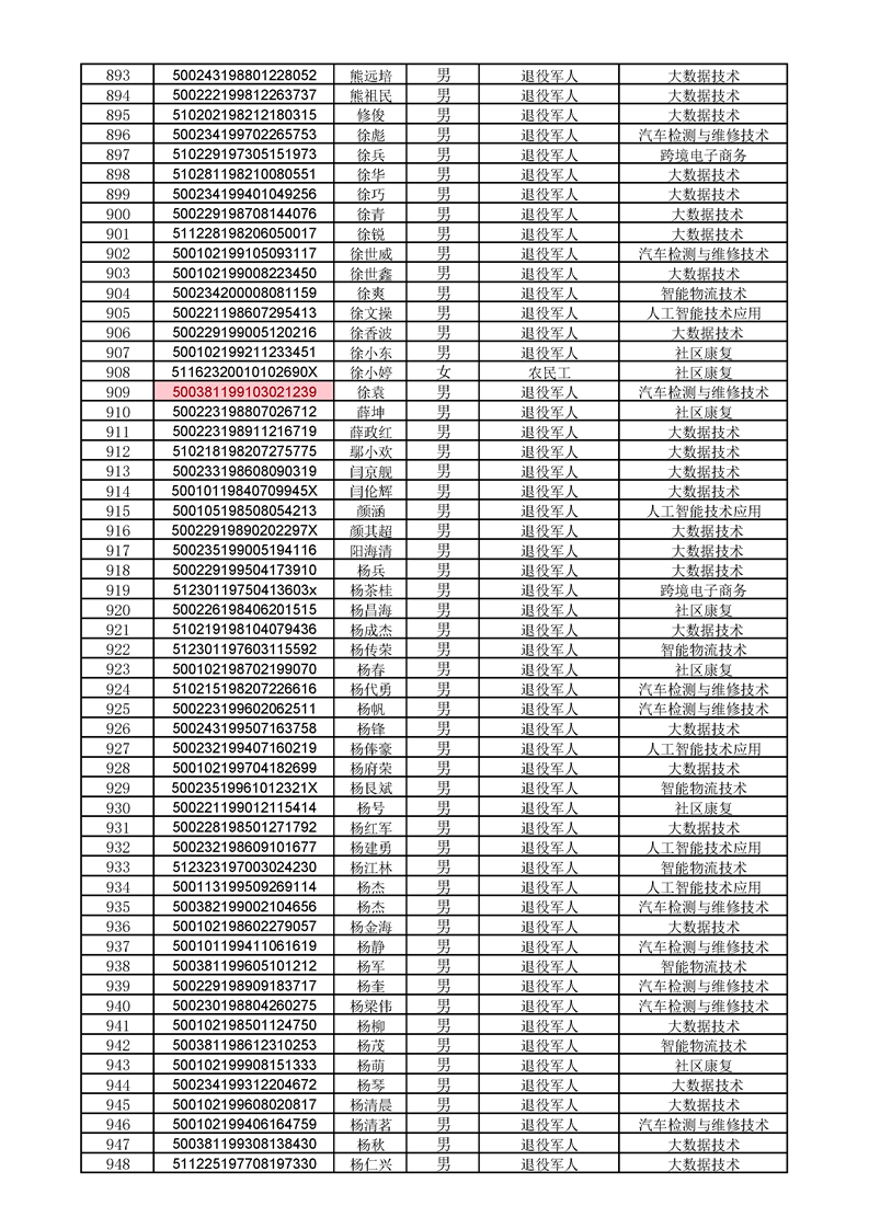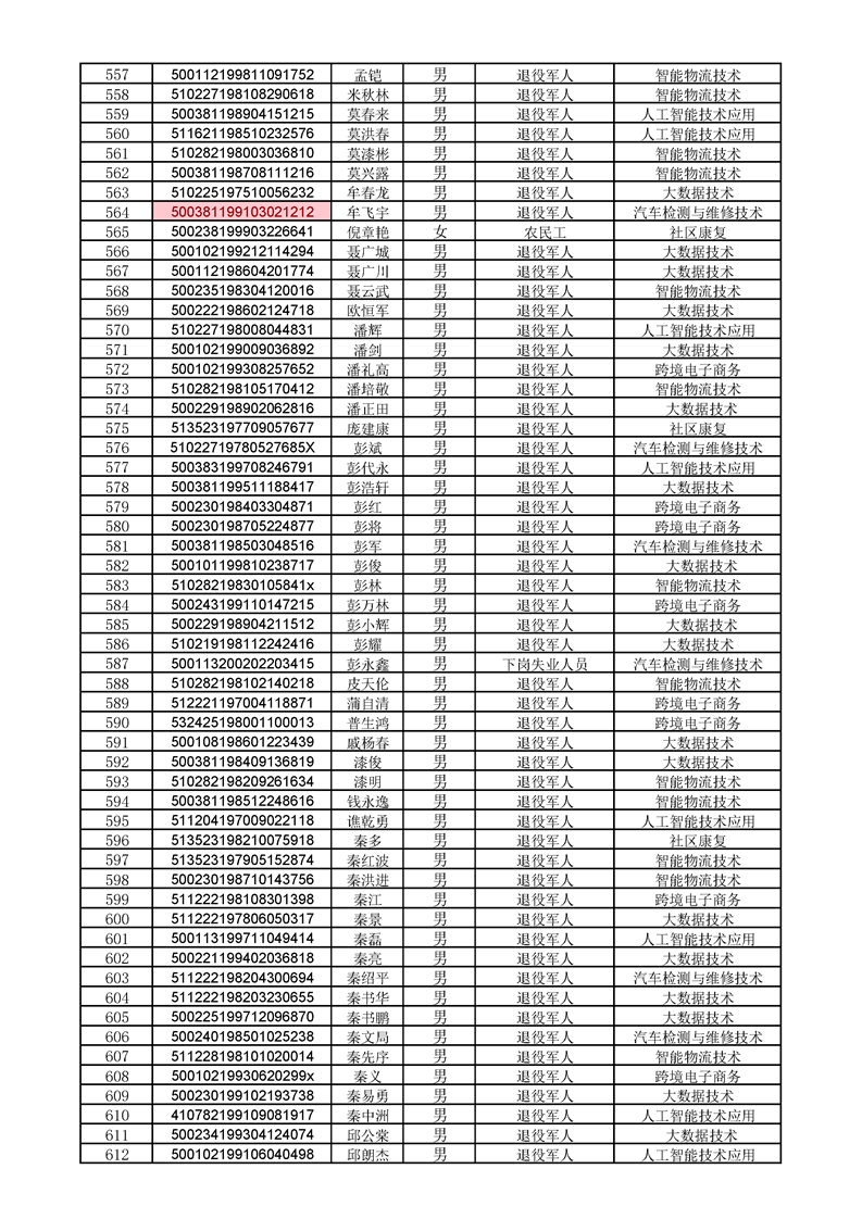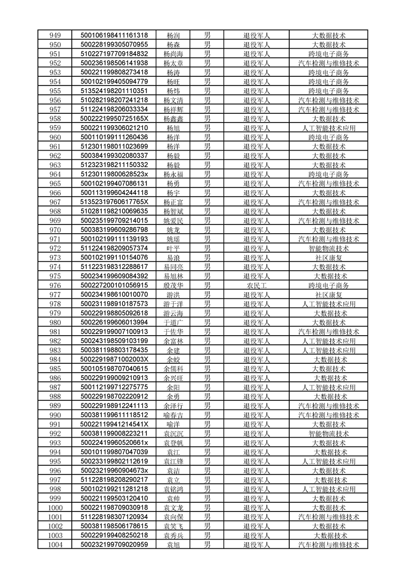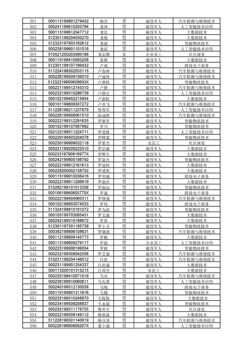 beat365英国官网网站2022级高职扩招学生录取人员名单
