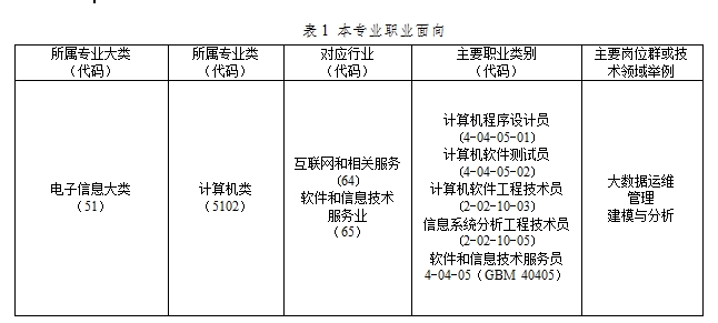 本专业培养理想信念坚定,德、智、体、美、劳全面发展,具有一定的科学文化水平,良好的人文素养,职业道德和创新意识,精益求精的工匠精神,较强的就业能力和可持续发展的能力,掌握本专业知识和技术技能,面向政府数据中心、金融机构、互联网企业以及零售、保险、电子商务等行业领域的大数据开发工程师、大数据分析工程师、机器学习及其应用工程师以及大数据运维管理工程师等职业群,能够从事大数据收集、清洗、分析、可视化、维护、管理等工作的高素质技术技能人才。