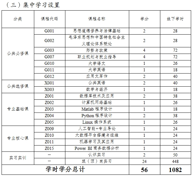 主要包含在校内外进行Matlab程序设计、Python程序设计、 数据库技术及应用、数据采集与数据预处理、大数据可视化等课程。