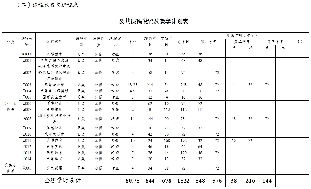 (一)公共基础课程(必选课、限选课)设置