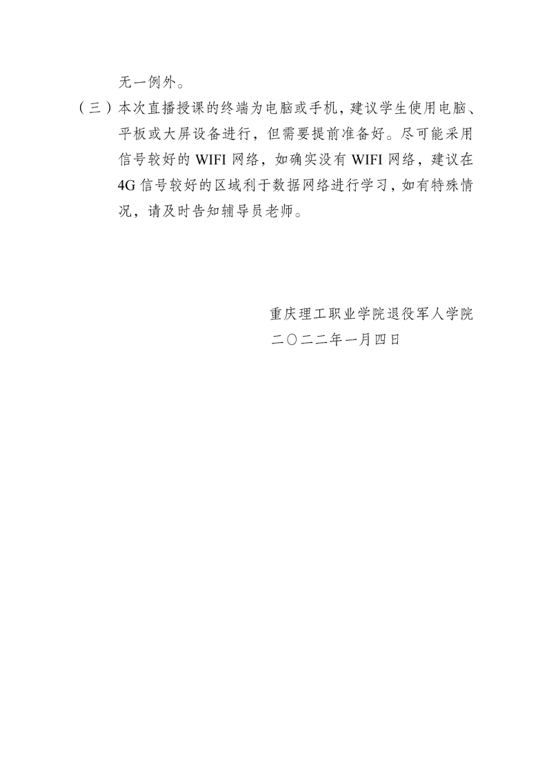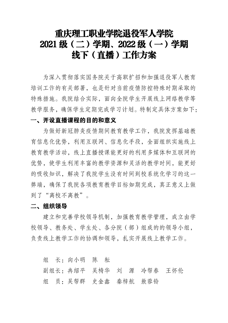 退役军人教育学院2021级(二)学期、2022级(一)学期 线下(直播)工作方案