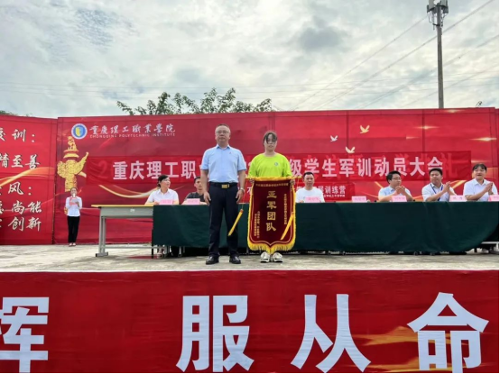 7天6晚的素质拓展训练转瞬即逝,同学们将自己最好的一面展现在了最后一天的汇报表演上,经过训练,他们脸上没有了初来时的胆怯,多了一份从容和自信,他们不再是陌生人,而是默契十足的团队。比赛终有胜者,校理事长,党委委员,龚必飞副校长、学校纪律监察委员会陶登明书记、学生工作部何军政副部长为获得冠军、亚军、季军的4连、6连、3连团队颁奖并合影留念。
