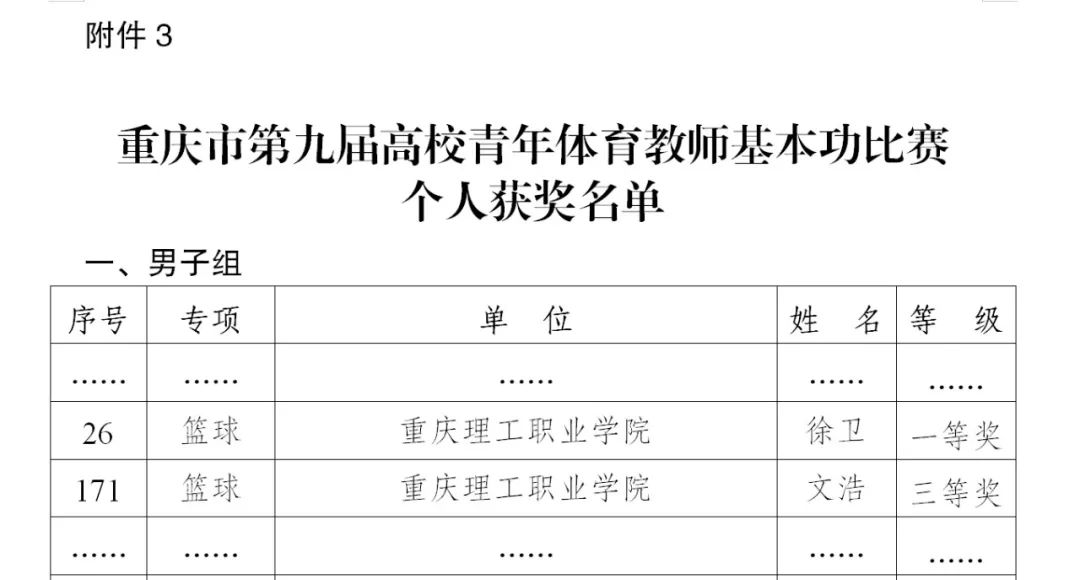 2024年1月12日-14日,由重庆市教育委会主办的“重庆市第九届高校青年体育教师基本功比赛”在西南大学隆重举行,来自全市65所高校的440名体育老师参加比赛。beat365官网参赛队伍由体育教研室主任谢长江老师带队,文浩、徐卫两位老师参加了此次比赛,经过三天激烈的比拼,最终获得个人奖项两项,突破历史最好成绩。