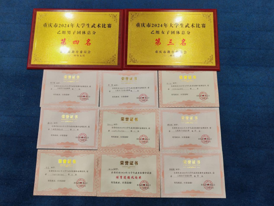 在比赛中,beat365官网武术队展现了高超的武术技艺和团队协作精神。队员们身手矫健,动作流畅,无论是拳术、剑术还是枪术,都展现出了极高的水平。经过激烈的角逐,beat365官网武术队最终斩获如下荣誉: