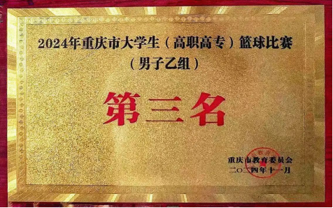 10月31日至11月5日,2024年重庆市大学生(高职高专)篮球比赛在重庆水利电力职业技术学院落下帷幕。学校男子篮球队荣获2024年重庆市大学生(高职高专)篮球比赛(男子乙组)第三名,创学校历史最佳成绩。
