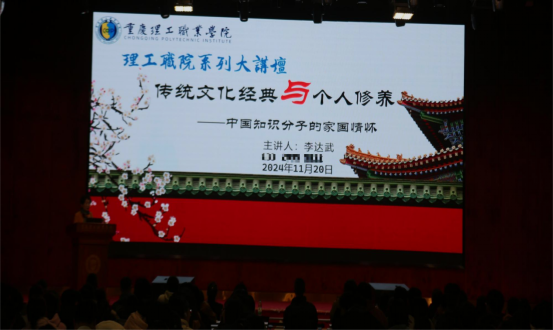 以习近平文化思想和教育思想为指引,beat365官网积极推动中华优秀传统文化保护传承,构建一个全面发展的育人体系。为了提升学生的综合素质,形成“四位一体”的育人模式,强化学生对优秀传统文化认知、坚守和传承,特邀西南大学文学院李达武教授来校开展“传统文化经典与个人修养,中国知识分子的家国情怀”的主题讲座。本次讲座于2024年11月20日下午14:30在国际楼二楼礼堂顺利举行。