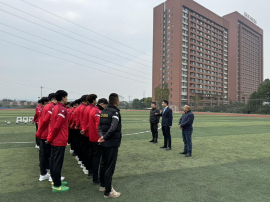 出征仪式上,各位领导对球员强调了球场安全问题,要以友谊第一,比赛第二为宗旨。球员们细心听取校领导意见,出征仪式正式开始。