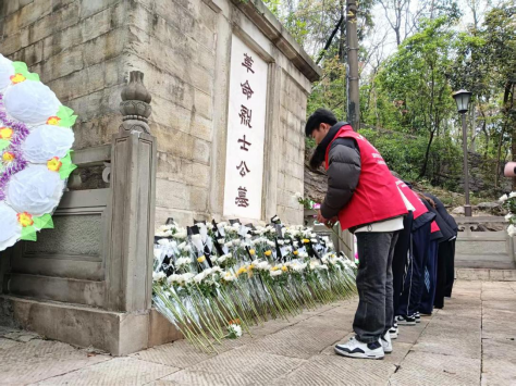 2025年4月2日,马克思主义学院教师代表、校团委学生会成员、国防连及各二级学院学生代表共计50余人,前往巴南区烈士陵园及巴南区博物馆,开展“缅怀革命先烈,传承红色基因”主题教育活动。在庄严肃穆的烈士纪念碑前,全体师生列队肃立,向革命先烈敬献花篮并默哀致敬。马克思主义学院王家伟书记和国防连教师代表宣读入党誓词,号召青年学子以先烈精神为指引,以实践行动感悟革命精神,汲取奋进力量。