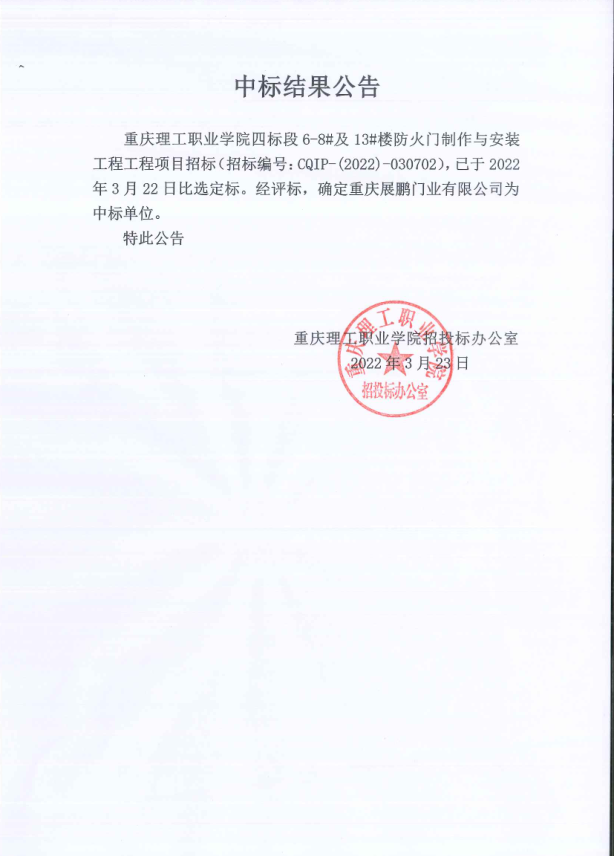 beat365英国官网网站6-8#及13#楼防火门制作与安装工程项目中标结果