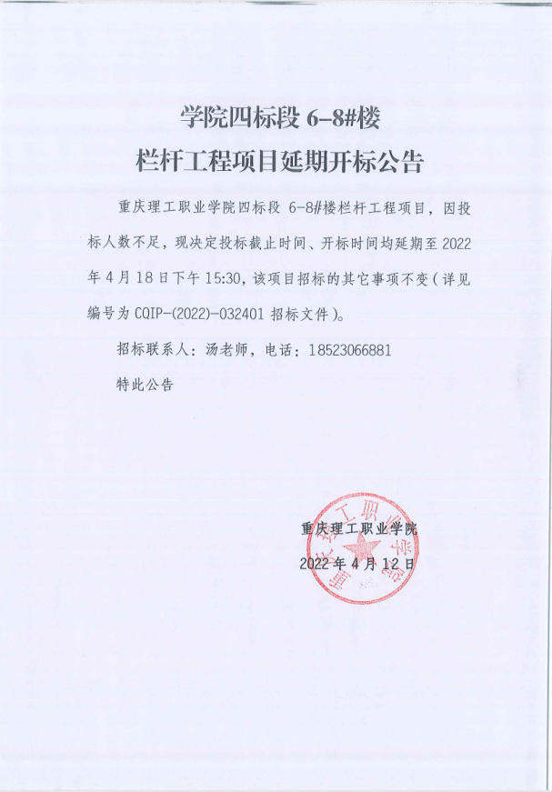 beat365英国官网网站四标段6-8#楼栏杆延期开标公告