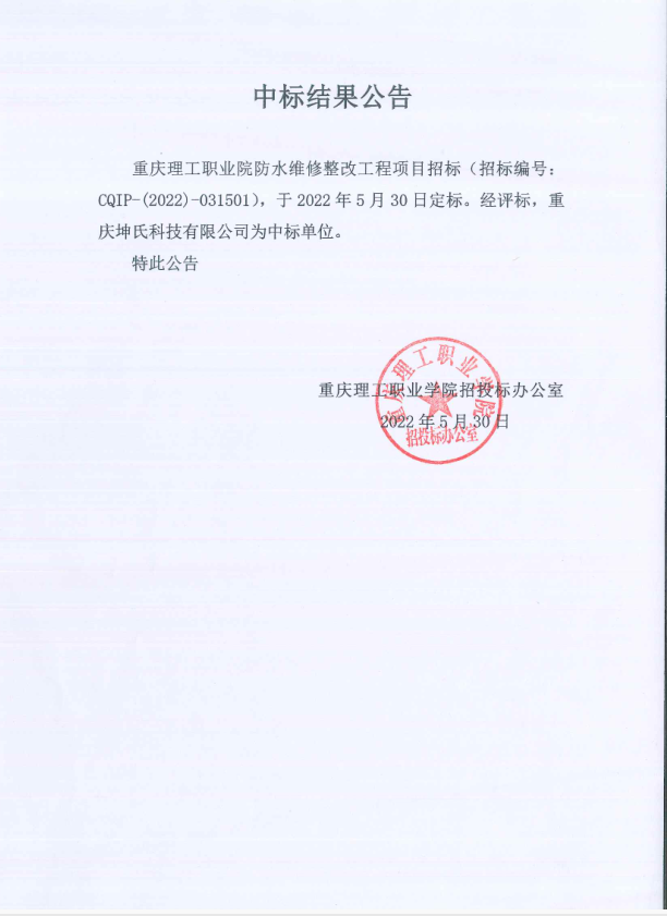 beat365英国官网网站防水维修工程项目中标结果公告