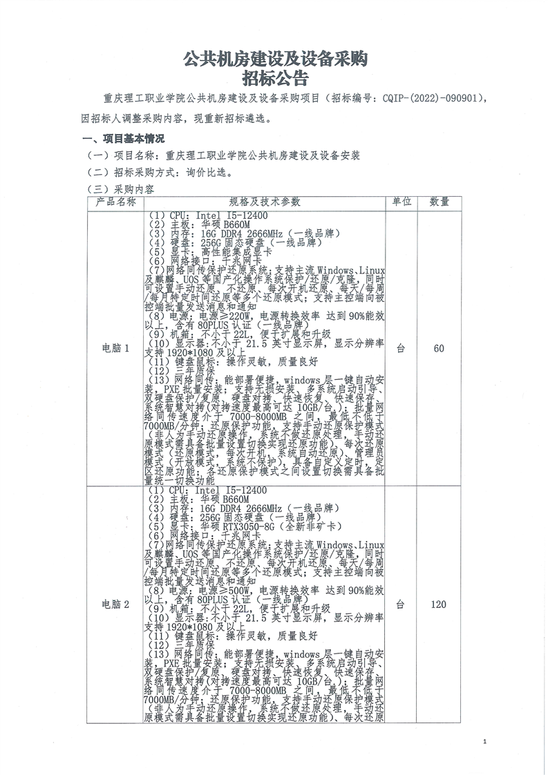 公共机房建设及设备采购招标公告(调整后)