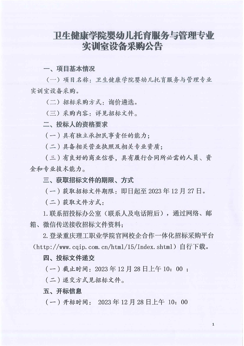 卫生健康学院婴幼儿托育服务与管理专业实训室设备采购公告