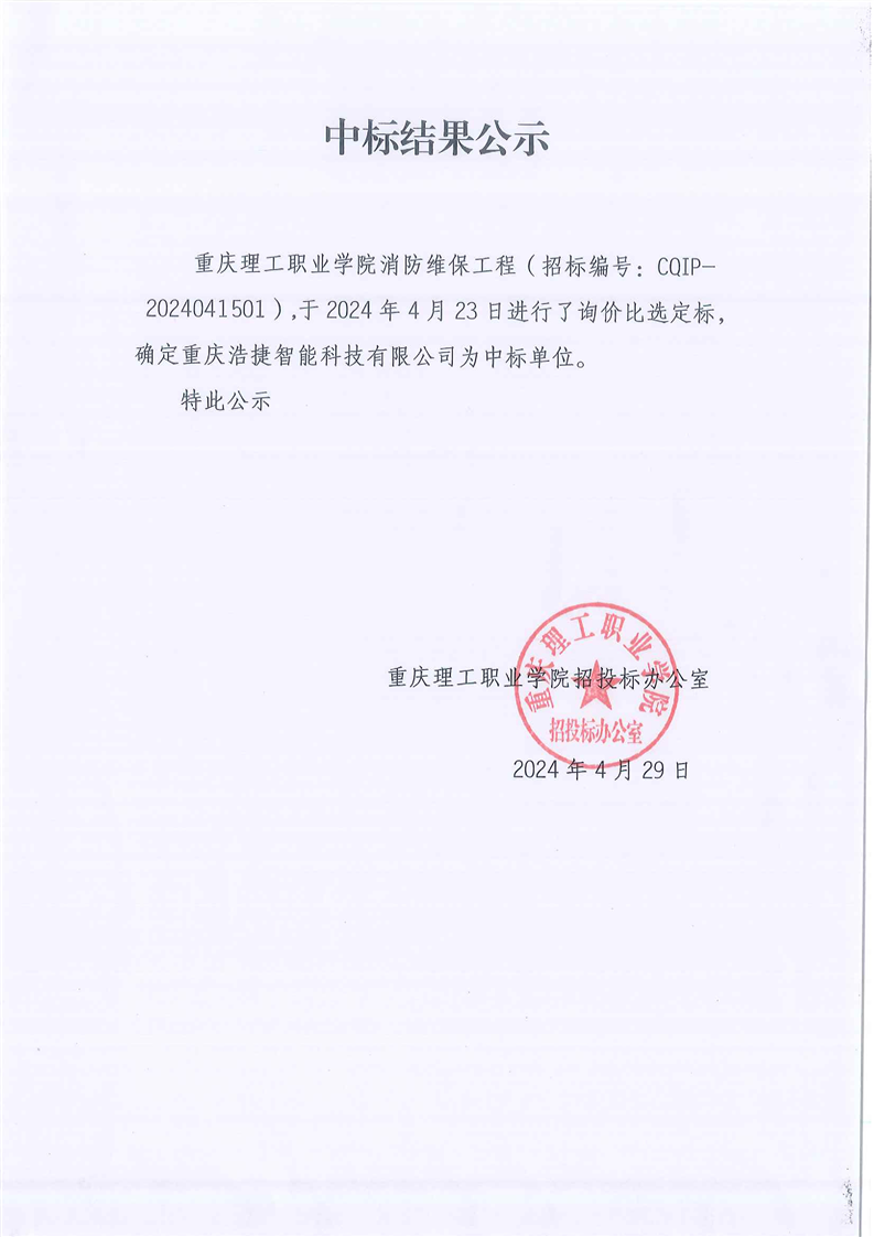 消防维保中标结果公示