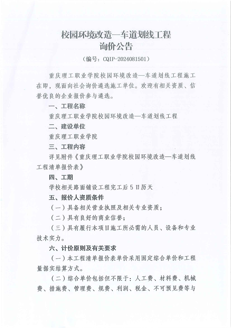 车道划线工程询价公告