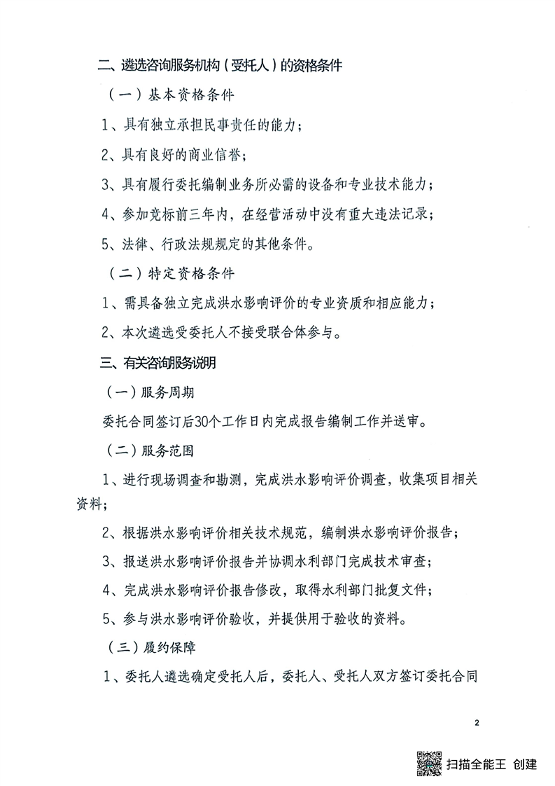编制洪水影响评价报告遴选咨询服务机构公告