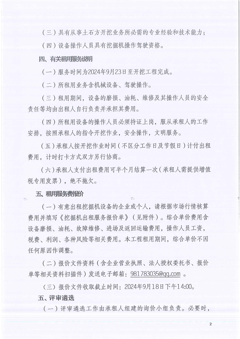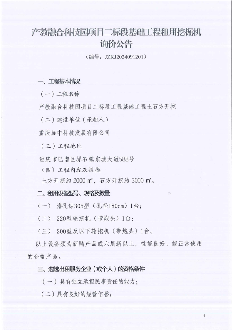 产教融合科技园项目二标段基础工程租用挖掘机询价公告