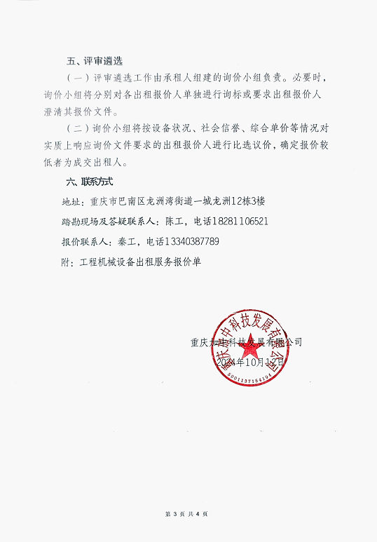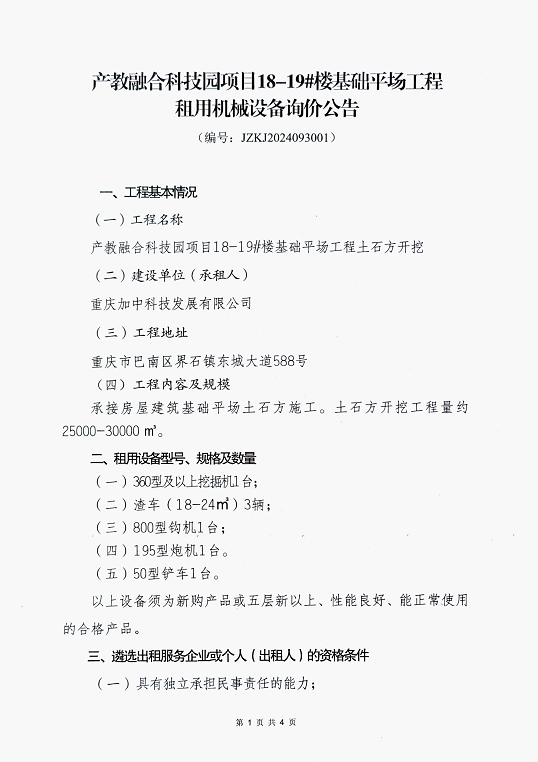 租用机械设备询价公告