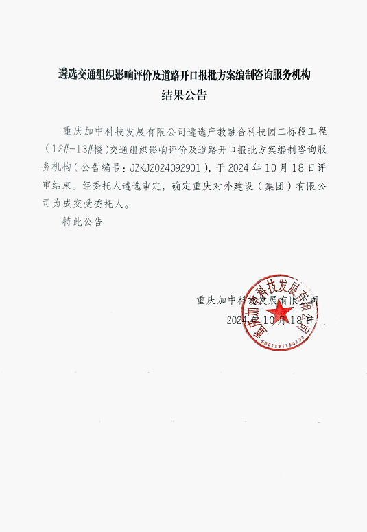 遴选交通组织影响评价及道路开口报批方案编制咨询服务机构结果公告