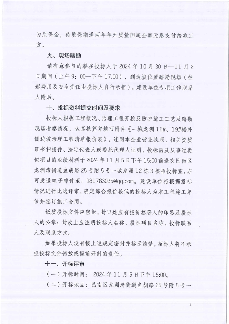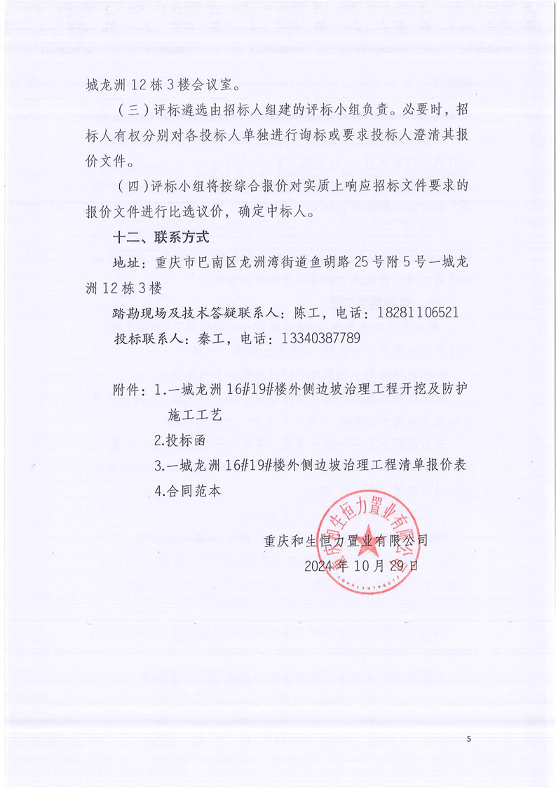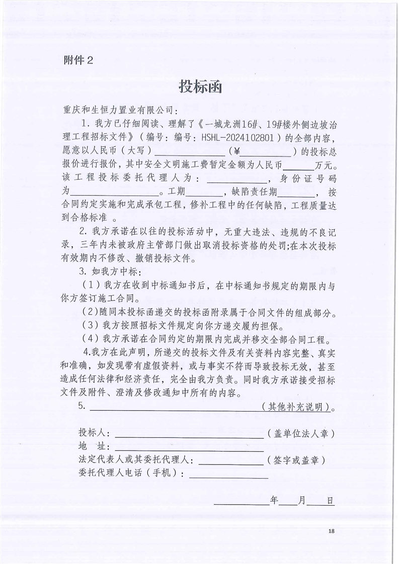 一城龙洲16#19#楼外侧边坡治理工程招标文件(编号:HSHL-2024102801)