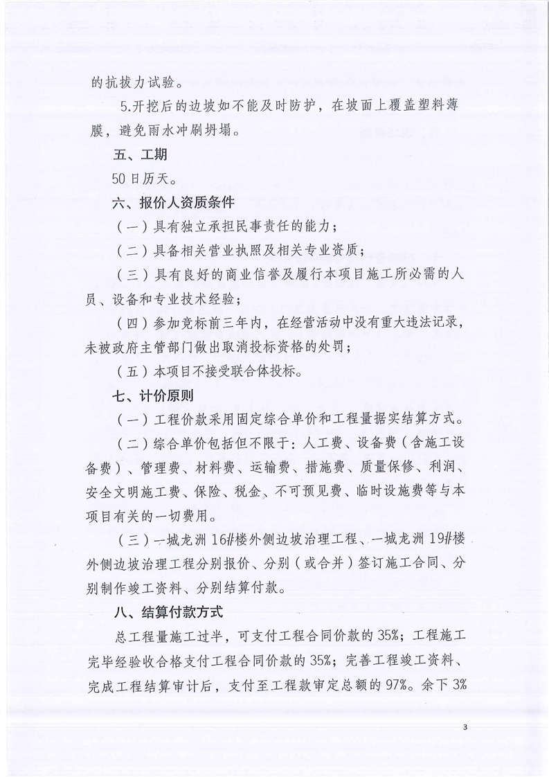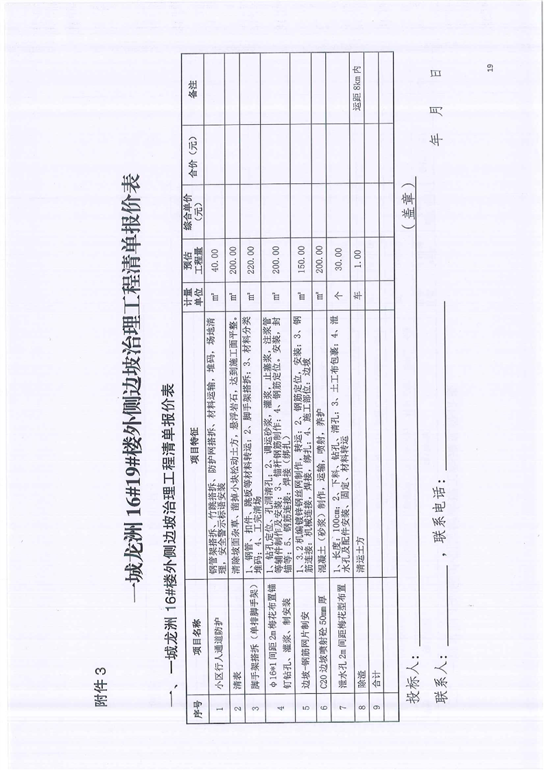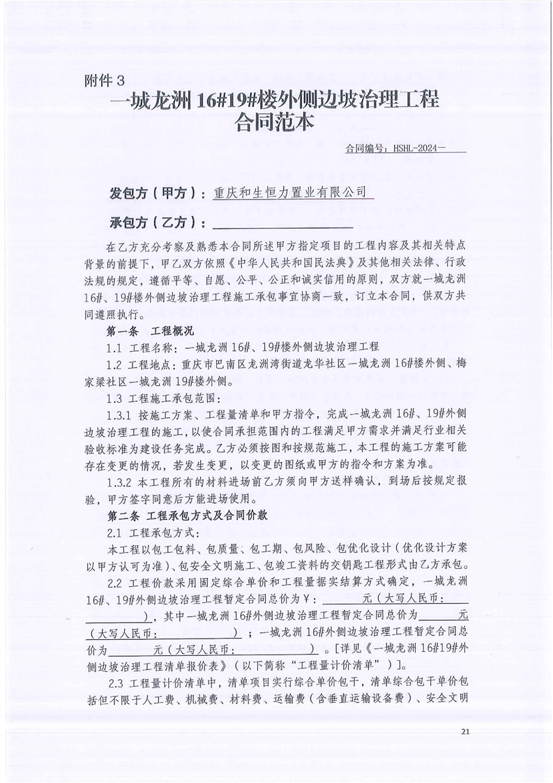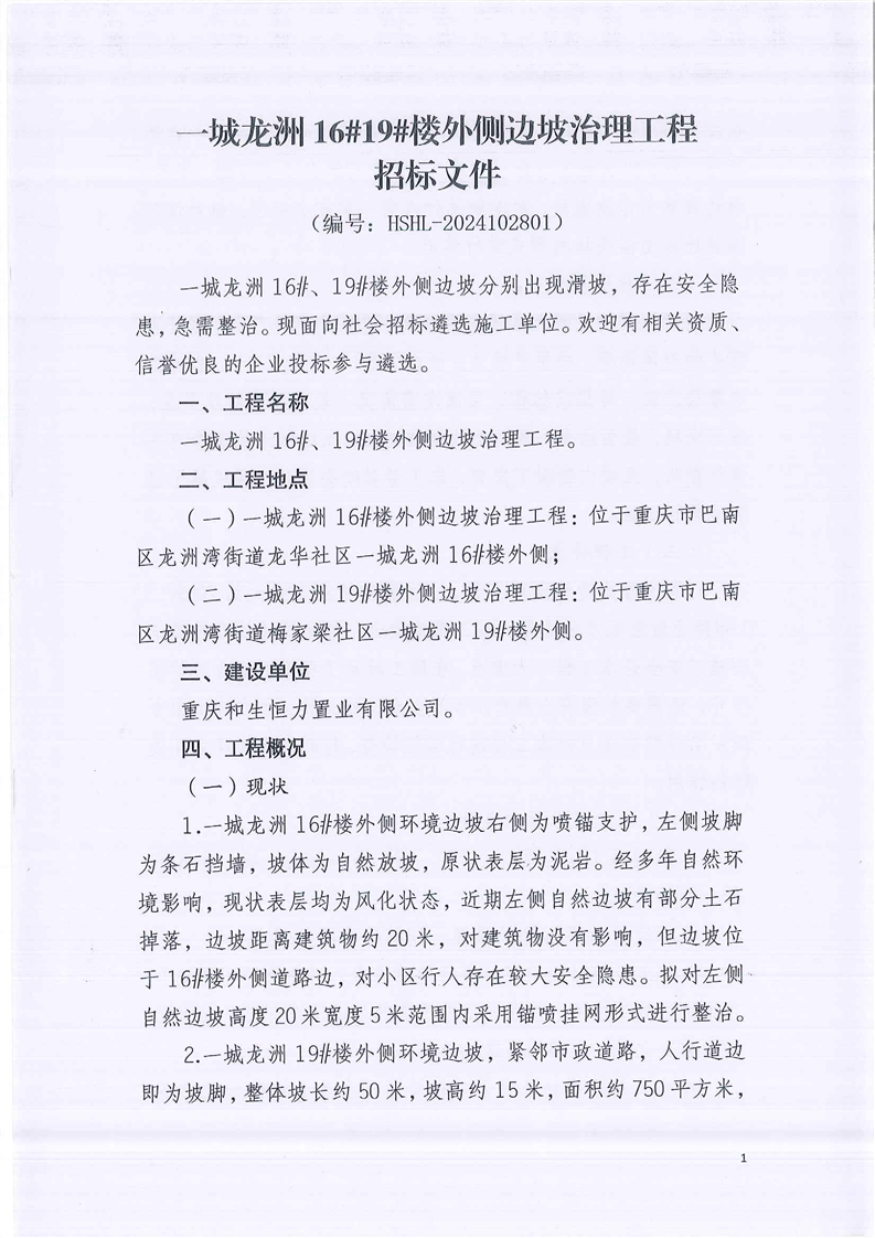一城龙洲16#19#楼外侧边坡治理工程招标文件(编号:HSHL-2024102801)