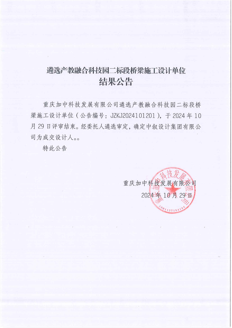 遴选产教融合科技园二标段桥梁施工设计单位结果公告