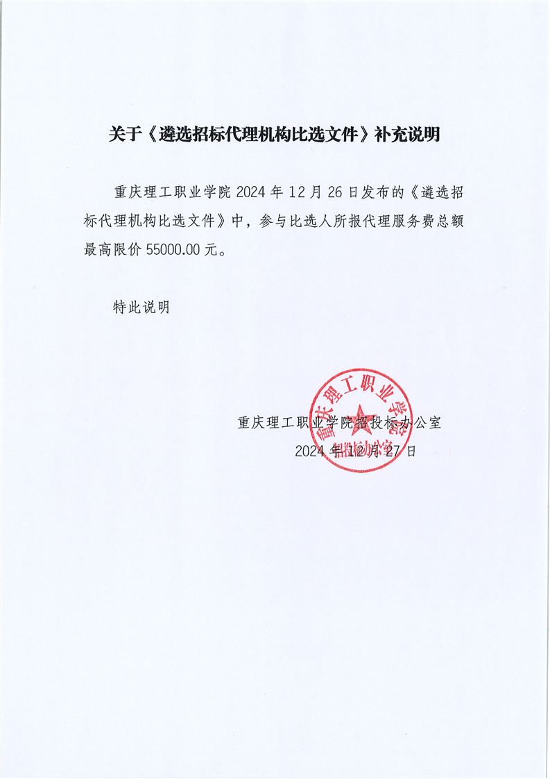 关于《遴选招标代理机构比选文件》补充说明