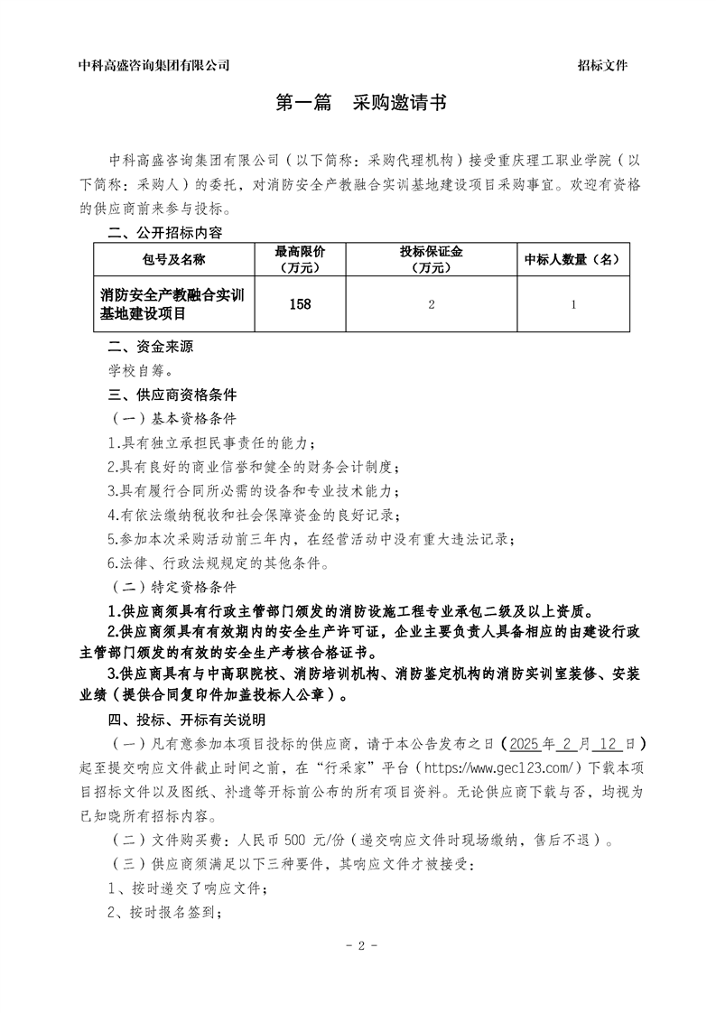 消防安全产教融合实训基地建设公开招标文件