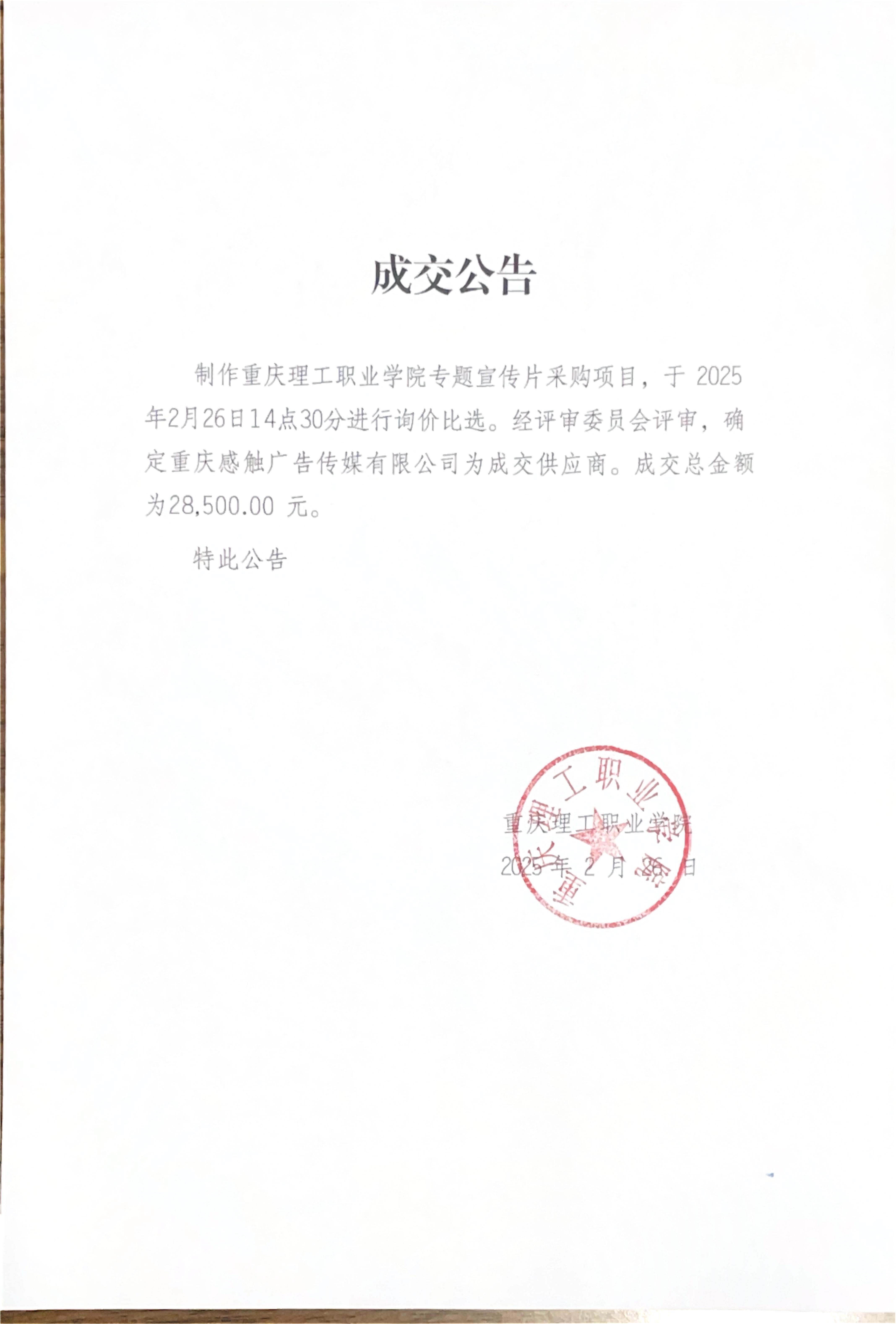 中标成交公示