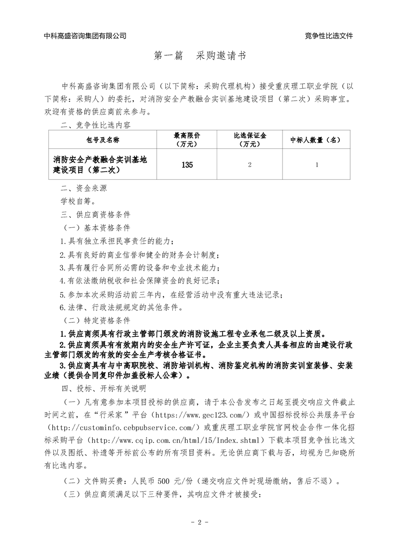 消防安全产教融合实训基地建设项目(第二次)竞争性比选