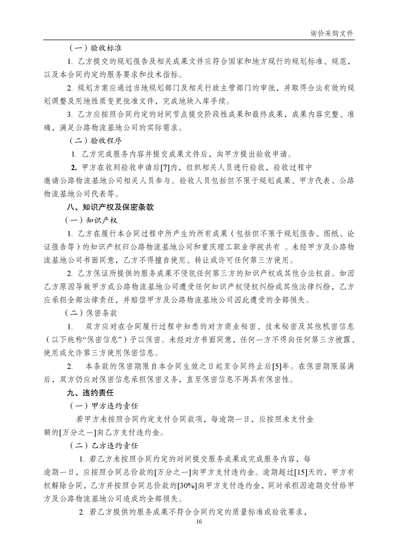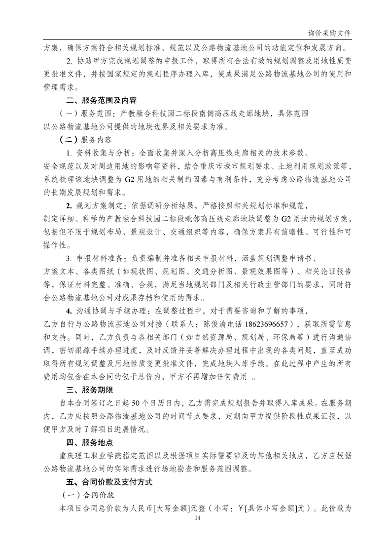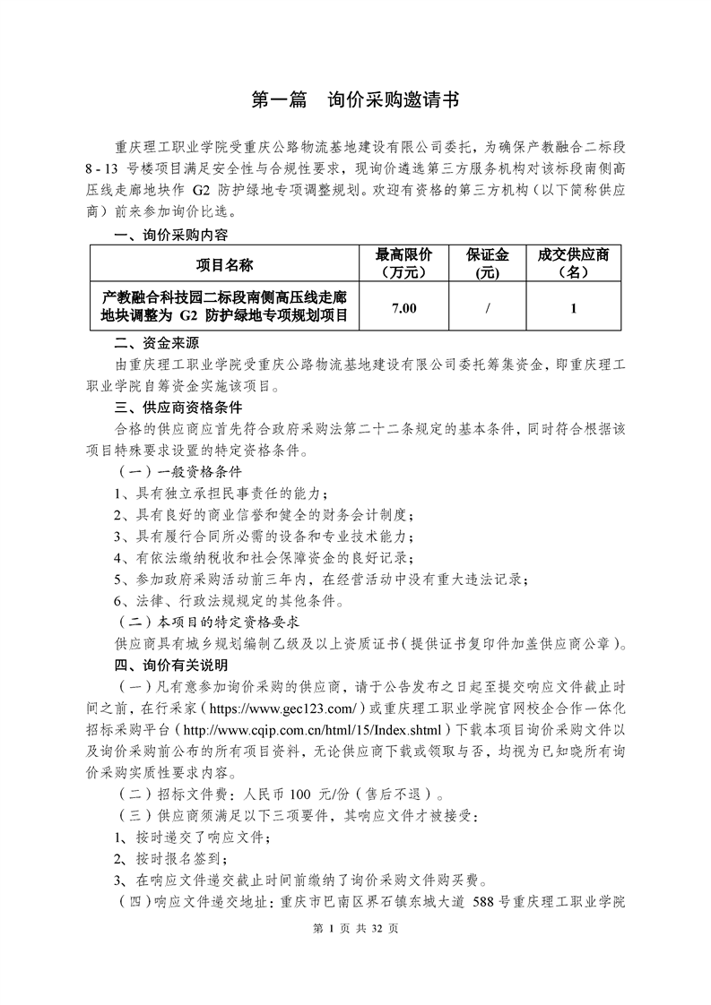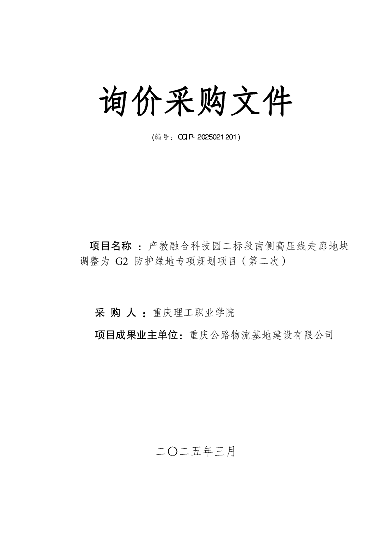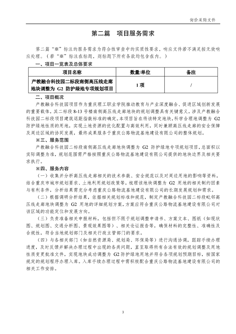 产教融合科技园二标段南侧高压线走廊地块调整为 G2 防护绿地专项规划项目询价采购文件(第二次)