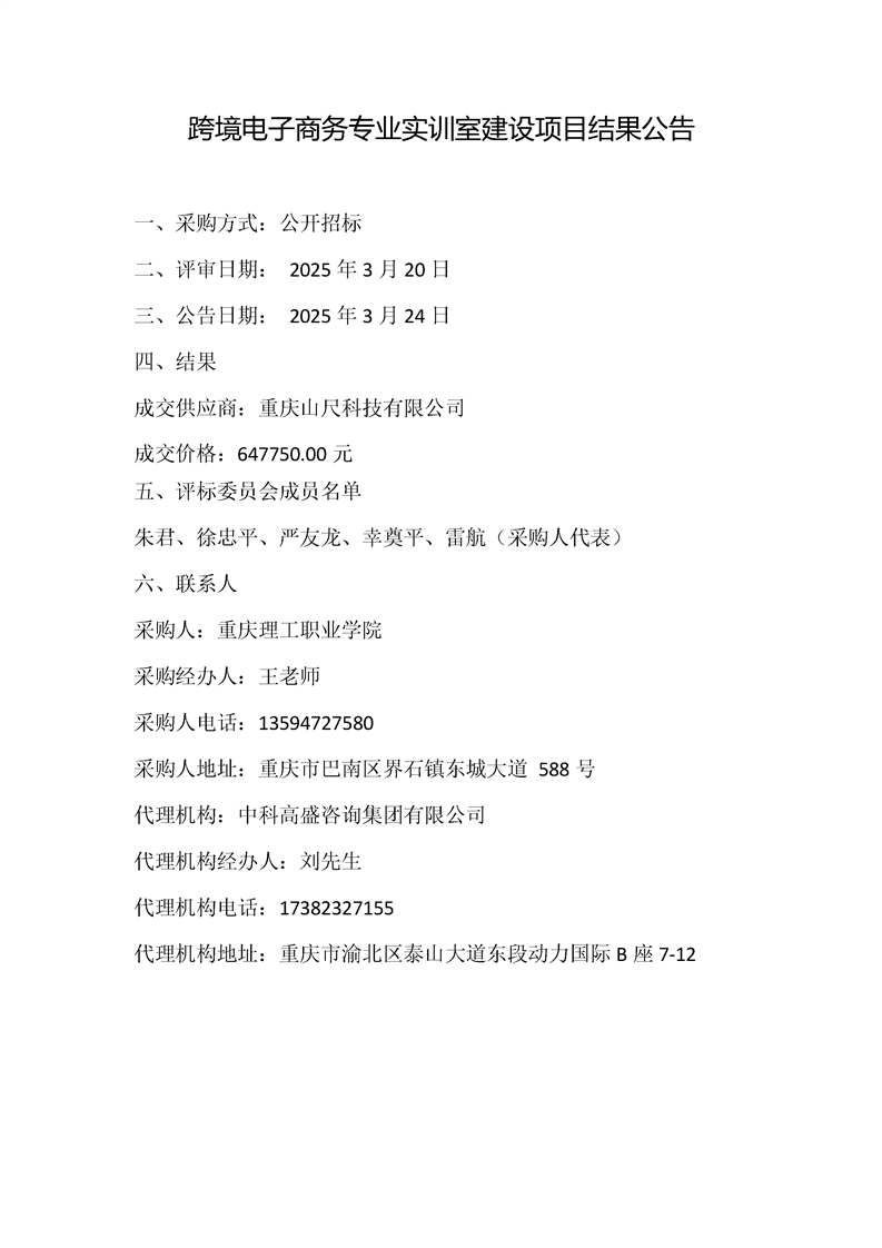 跨境电子商务专业实训室建设项目结果公告