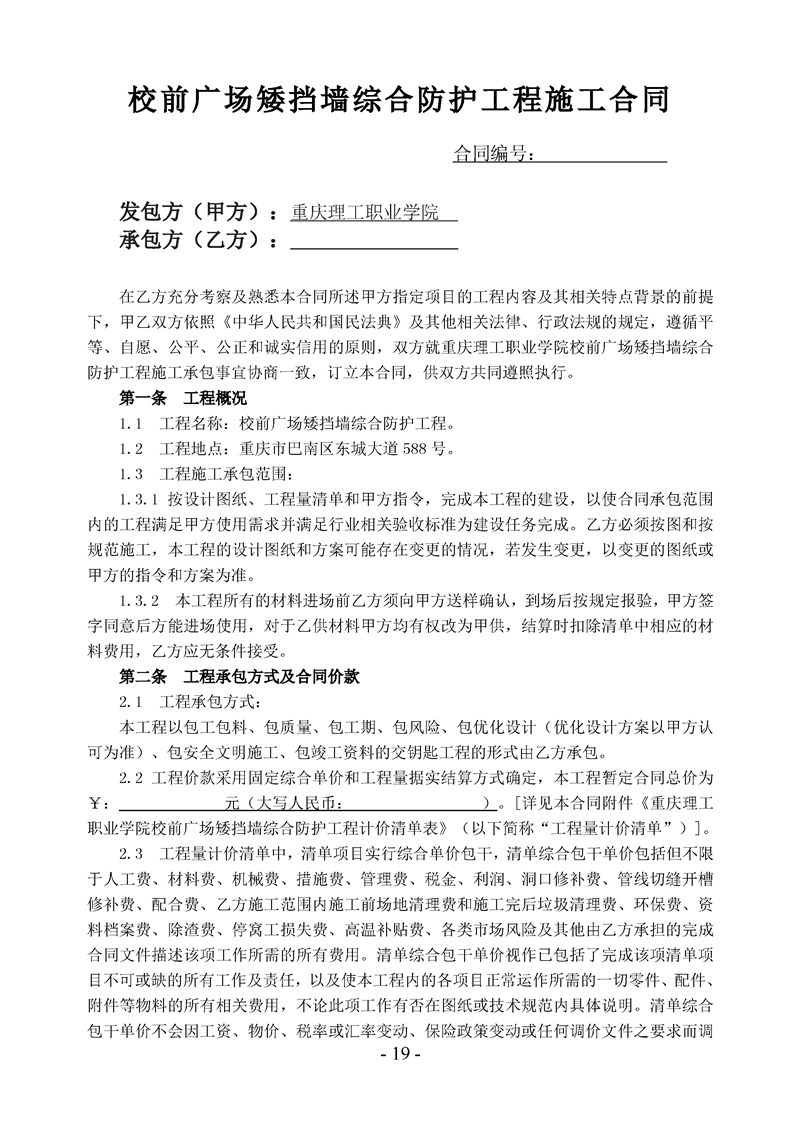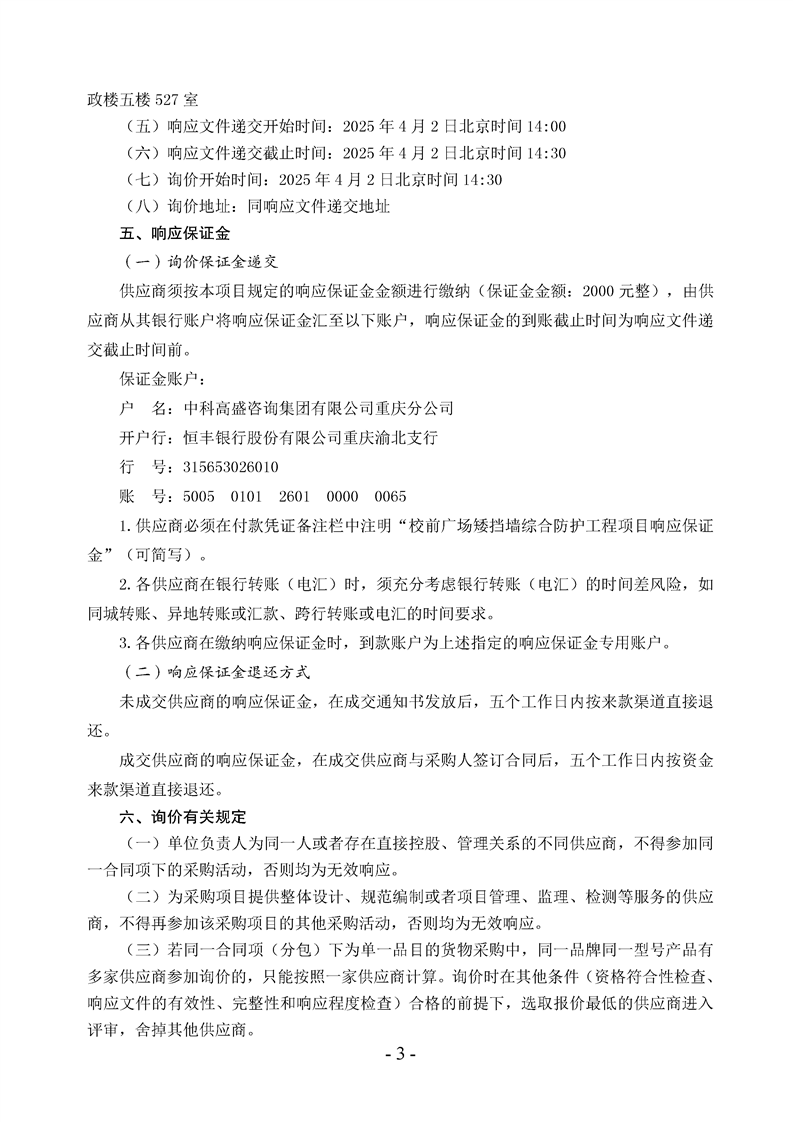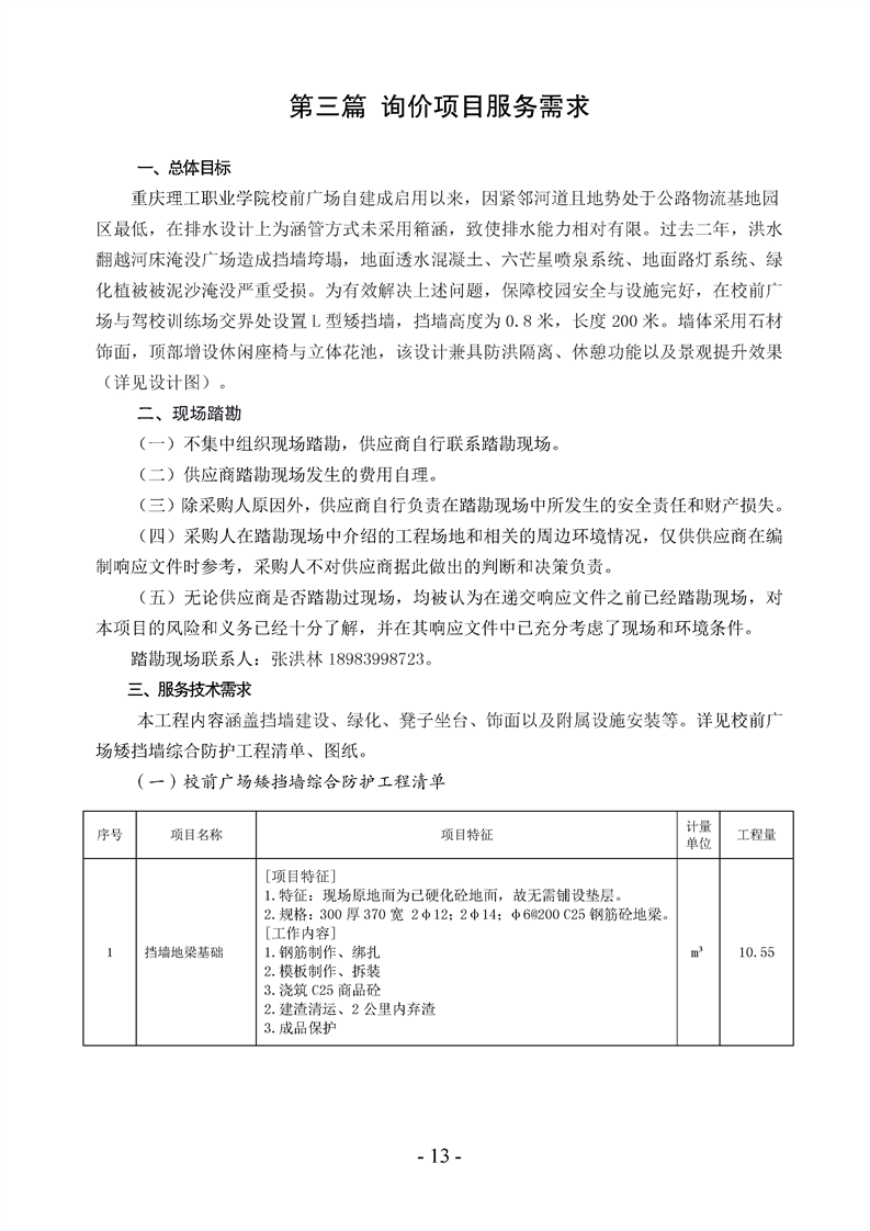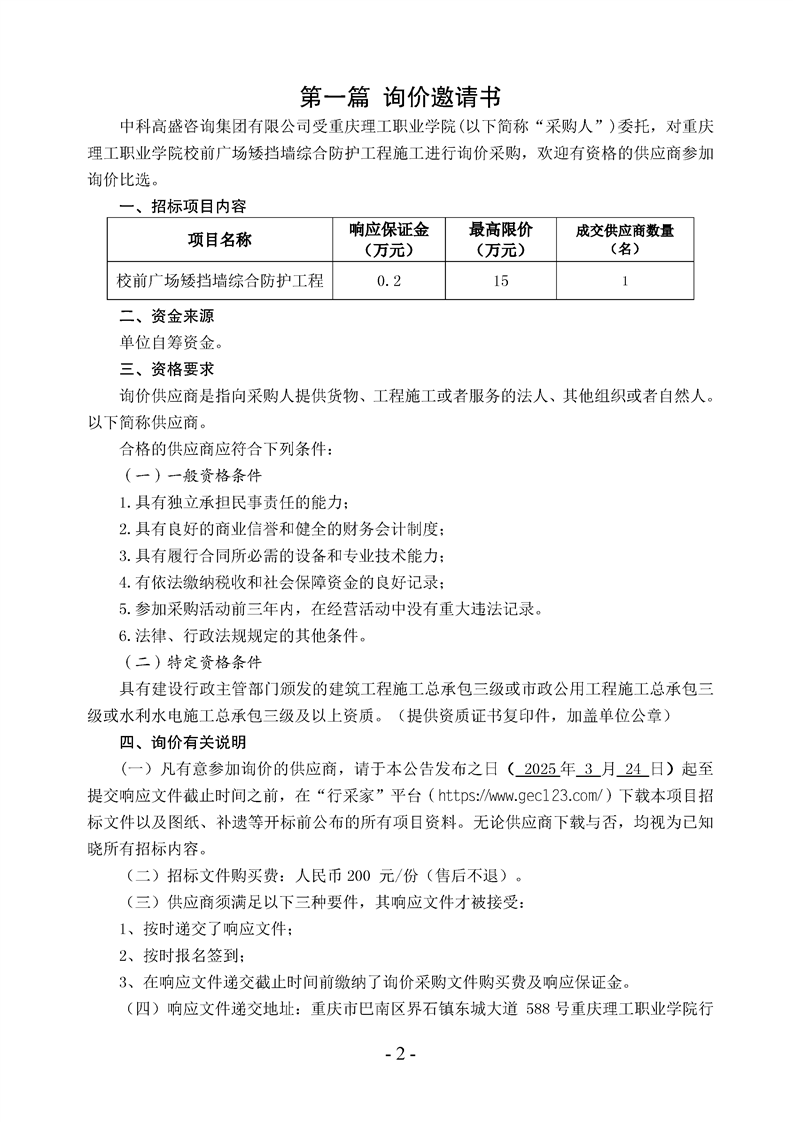 校前广场矮挡墙综合防护工程询价通知书