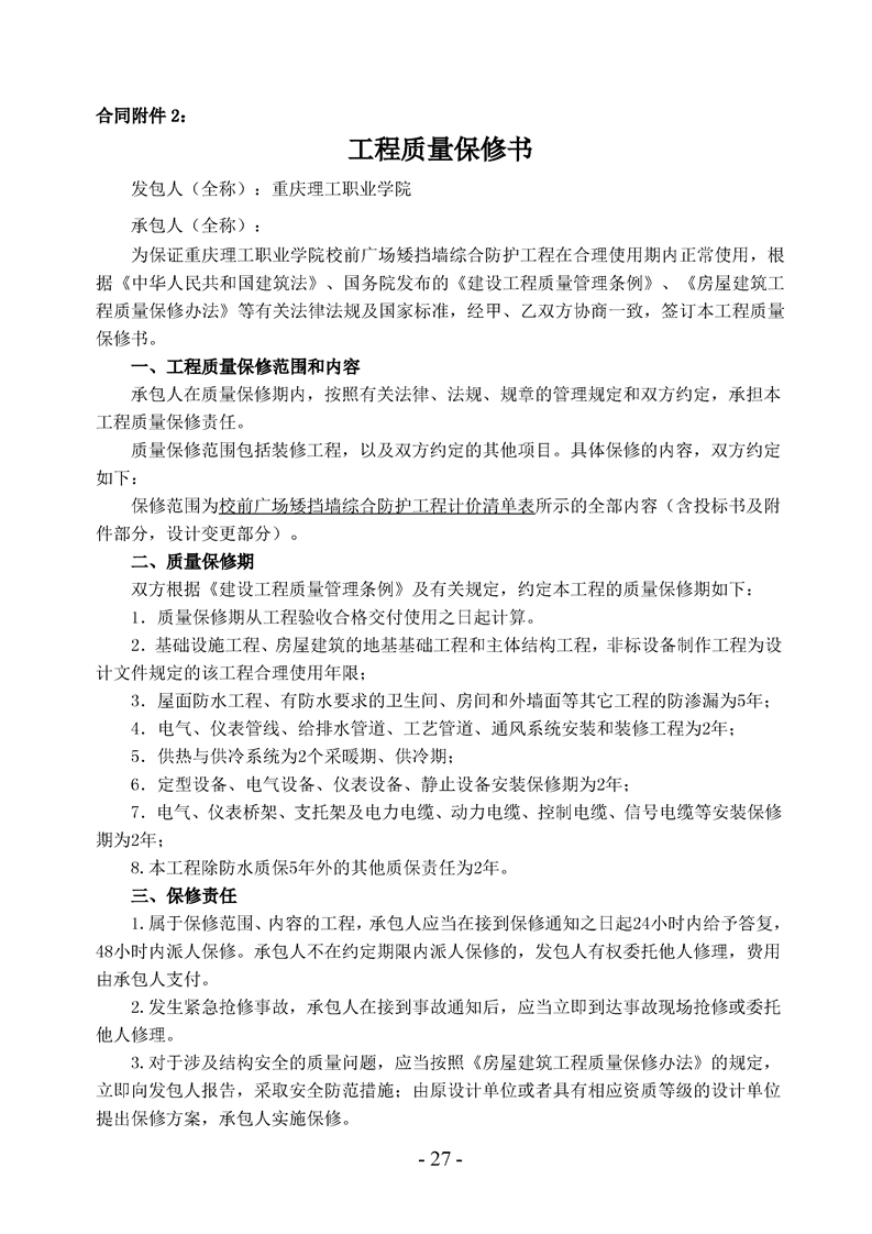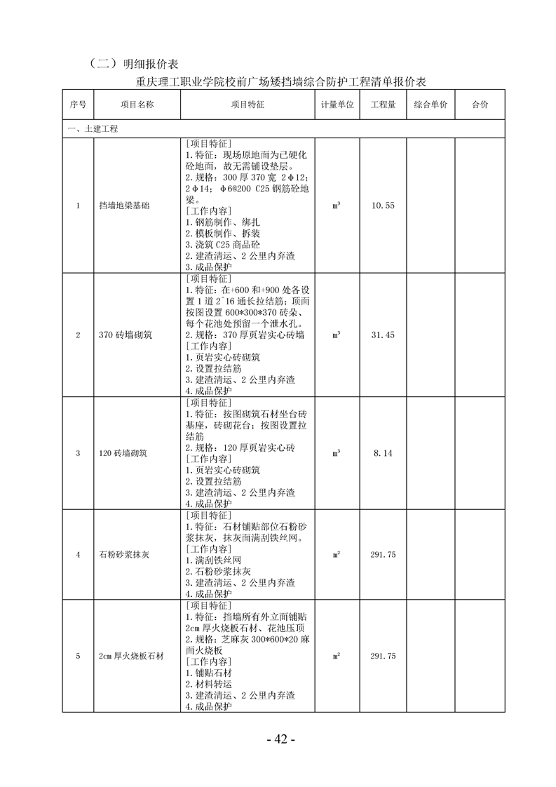校前广场矮挡墙综合防护工程询价通知书