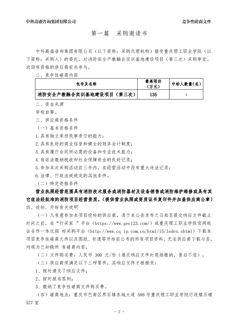消防安全产教融合实训基地建设项目(第三次)竞争性磋商文件