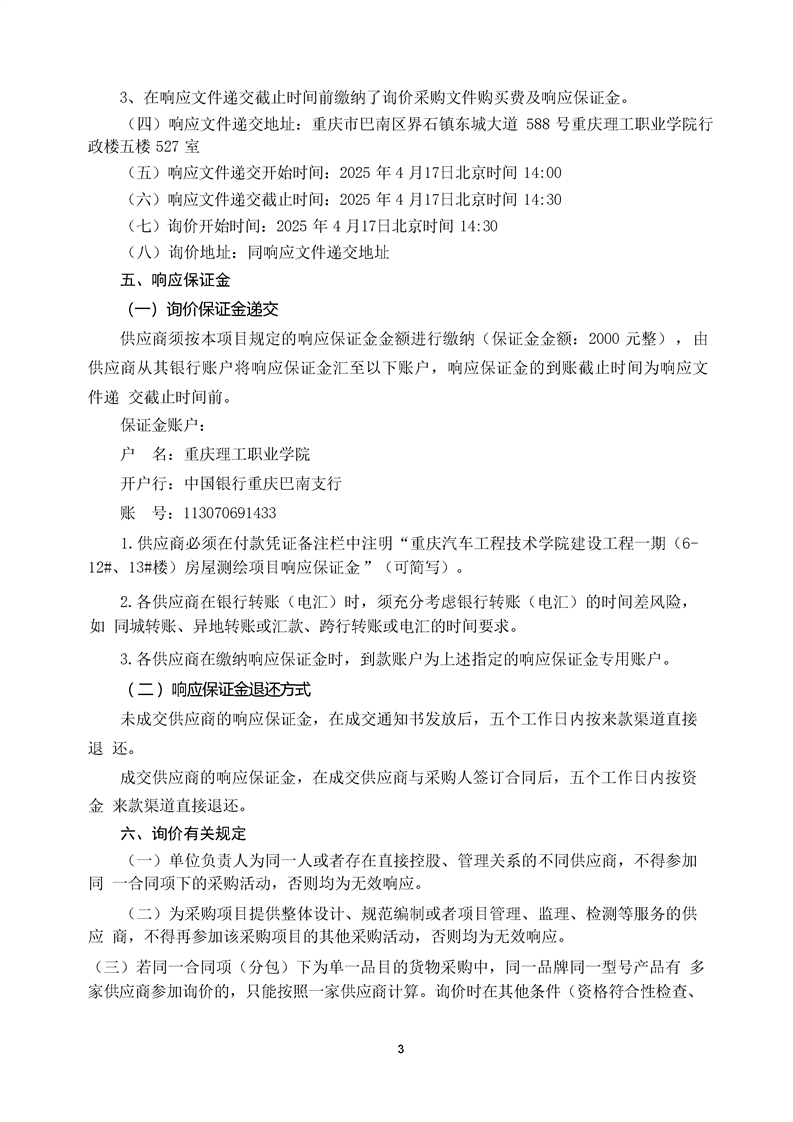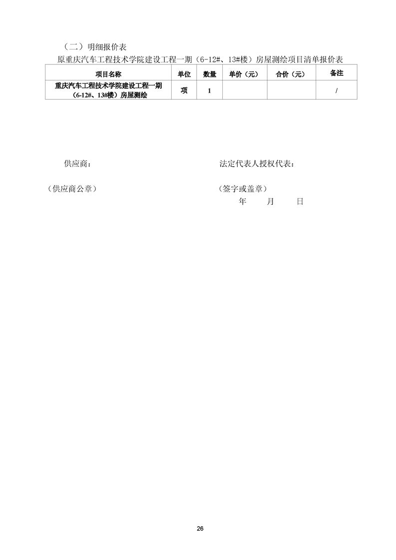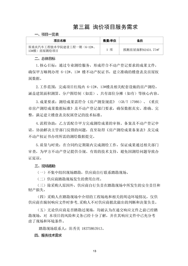 原重庆汽车工程技术学院建设工程一期(6-12#、13#楼)房屋测绘项目询价文件