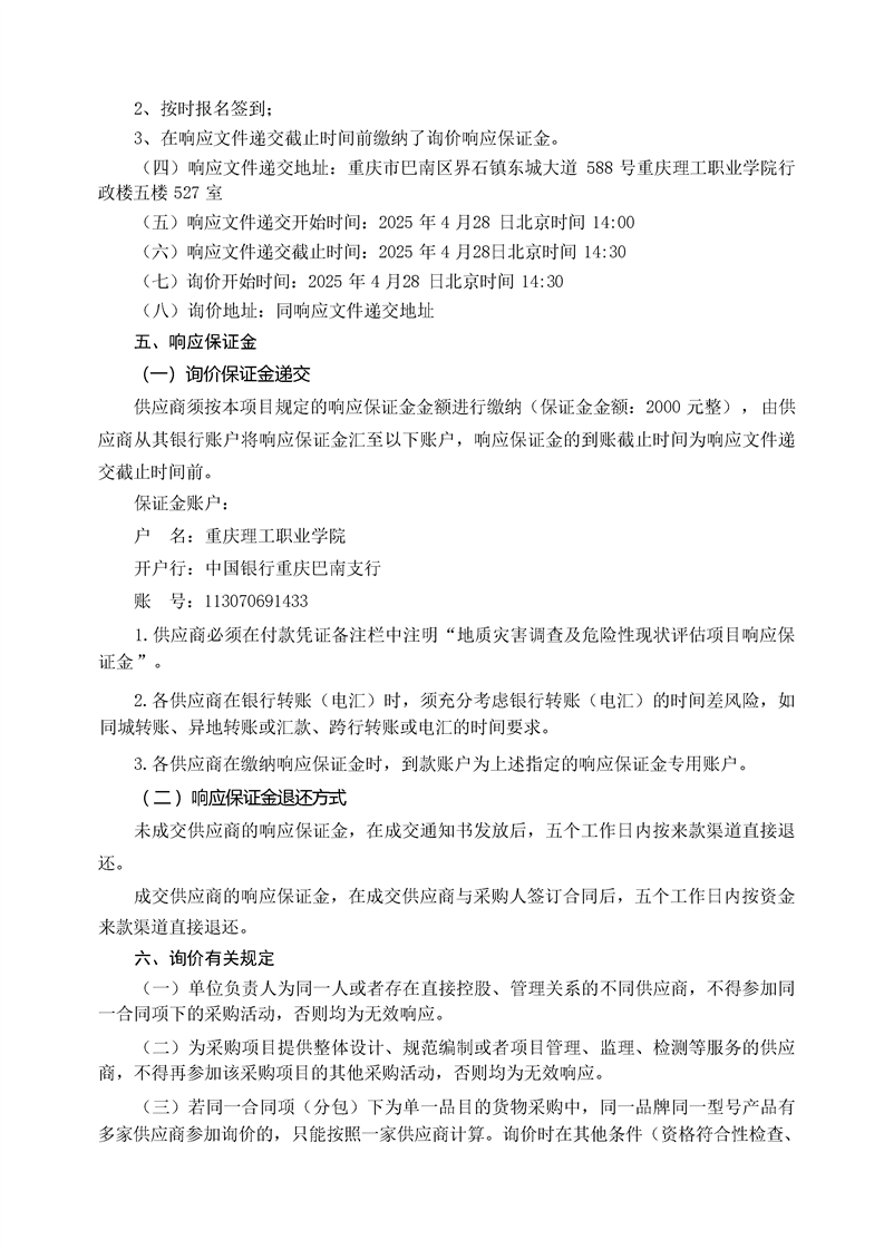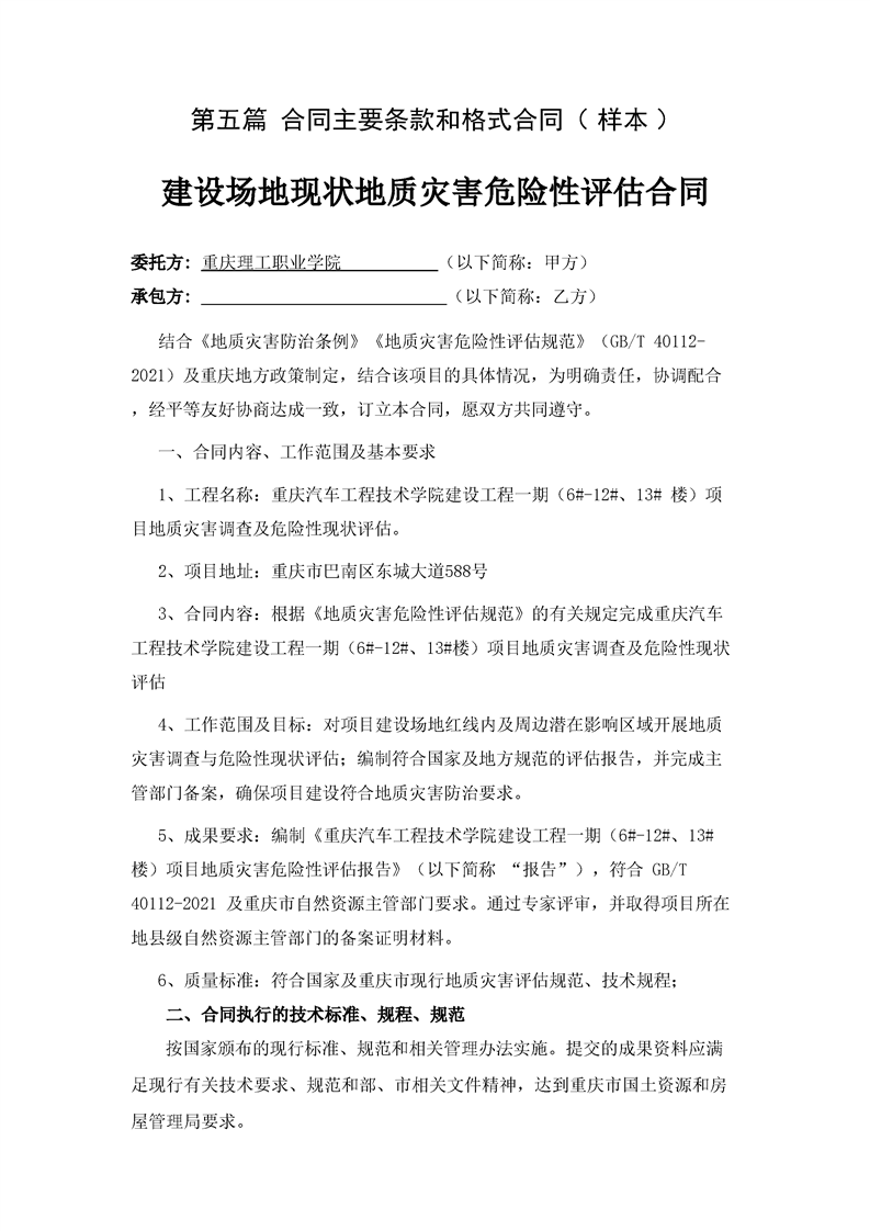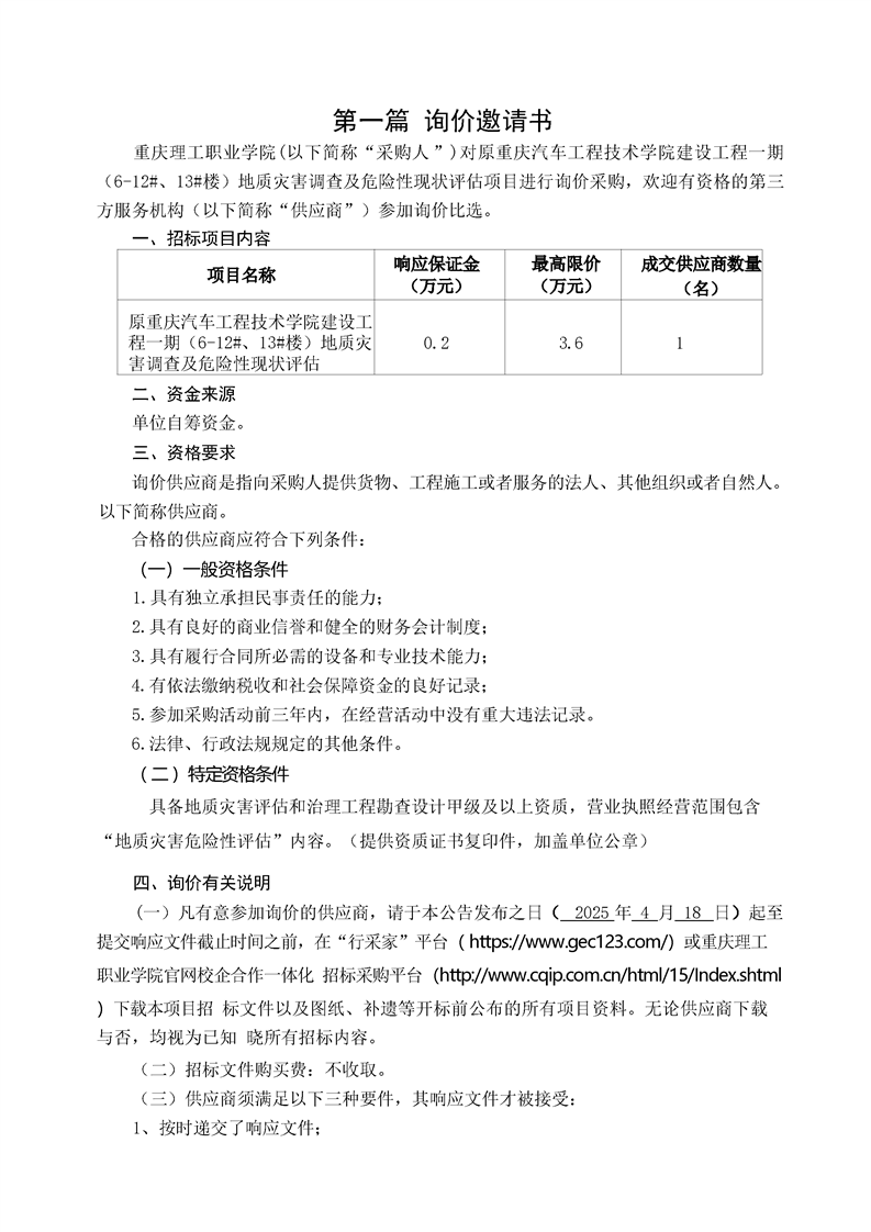 原重庆汽车工程技术学院建设工程一期(6-12#、13#楼)地质灾害调查及危险性现状评估项目询价文件