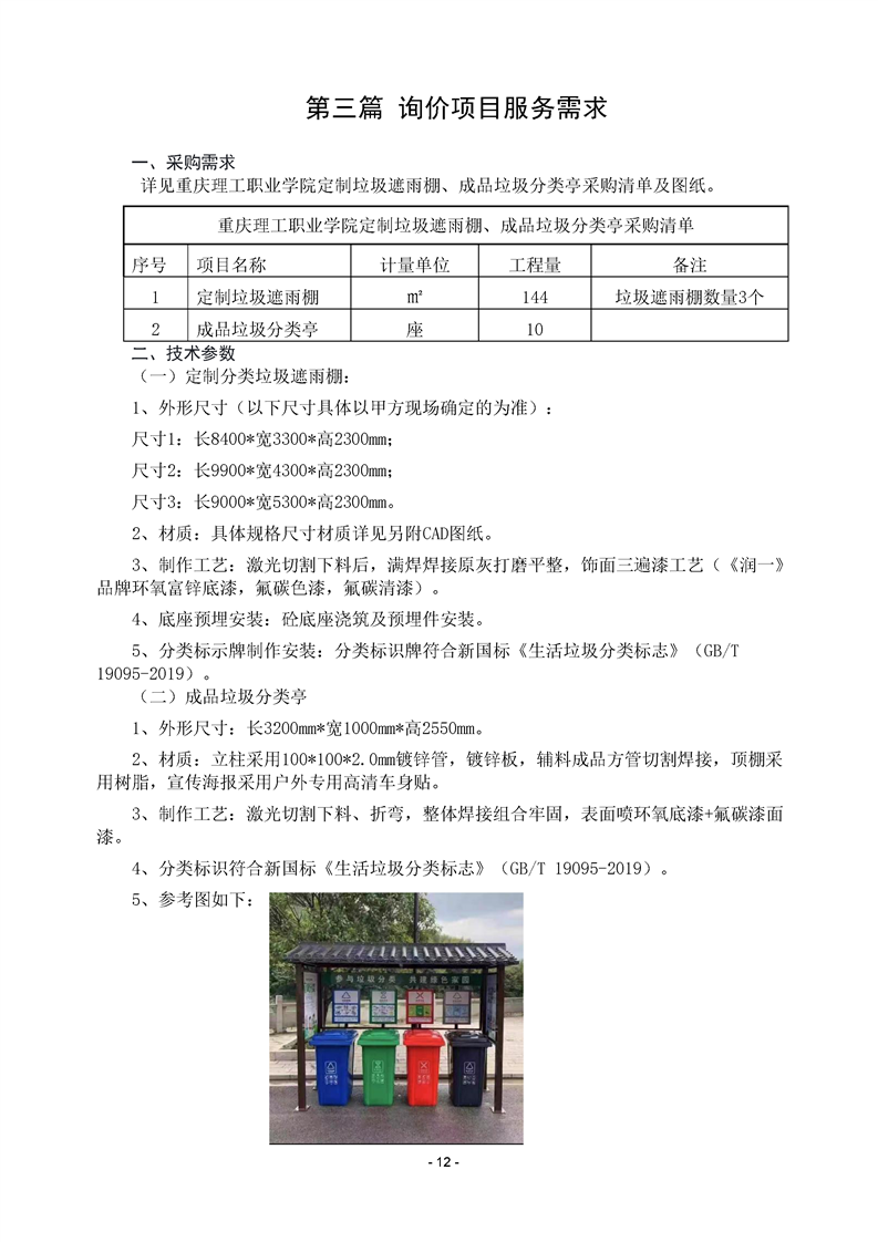 beat365英国官网网站定制垃圾遮雨棚、成品垃圾分类亭采购询价文件