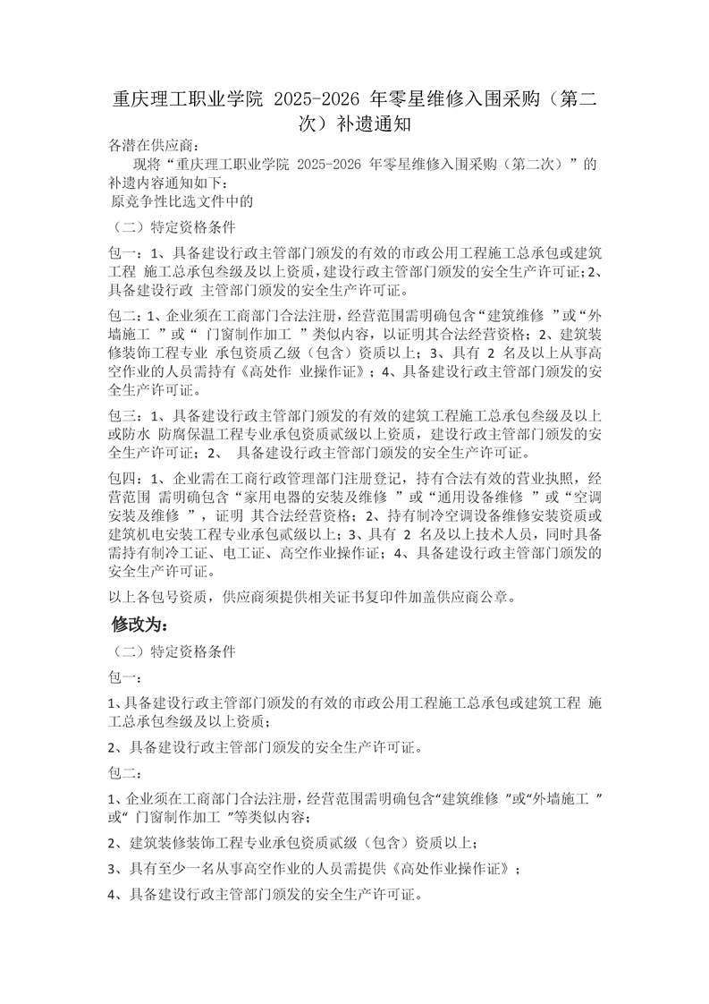 beat365英国官网网站 2025-2026 年零星维修入围采购(第二次)补遗通知