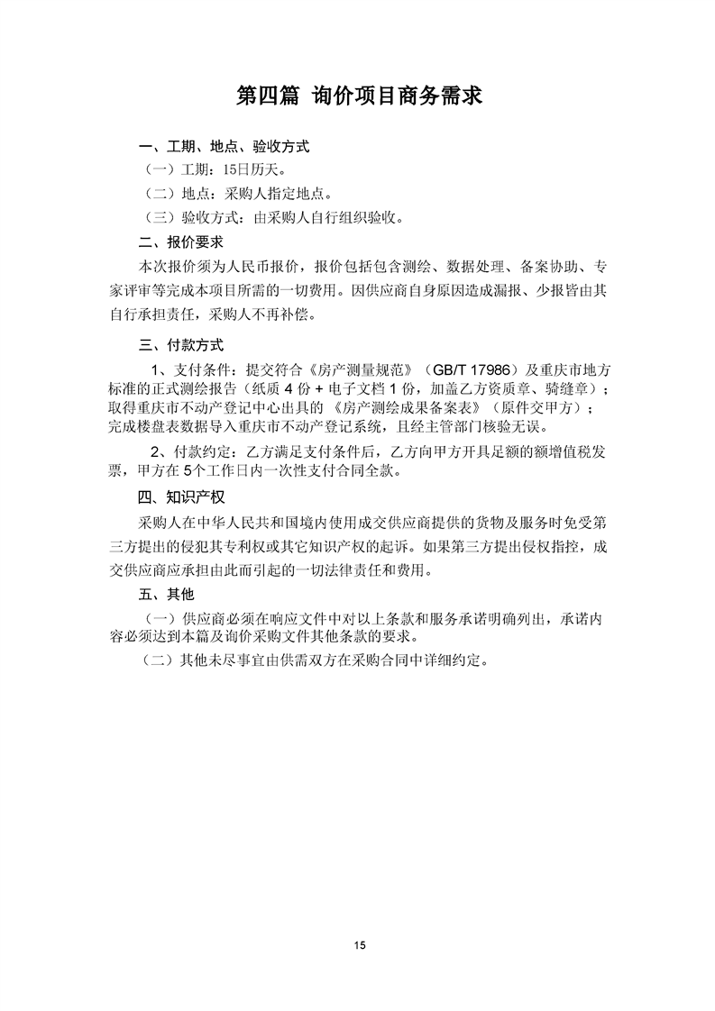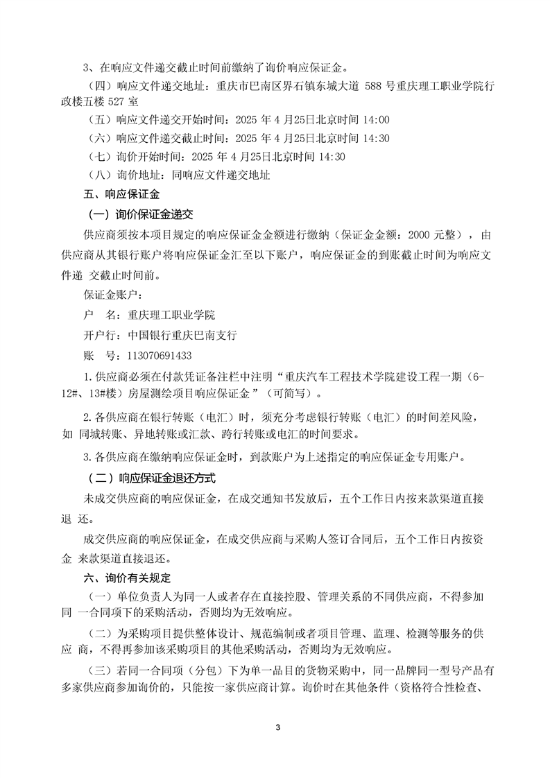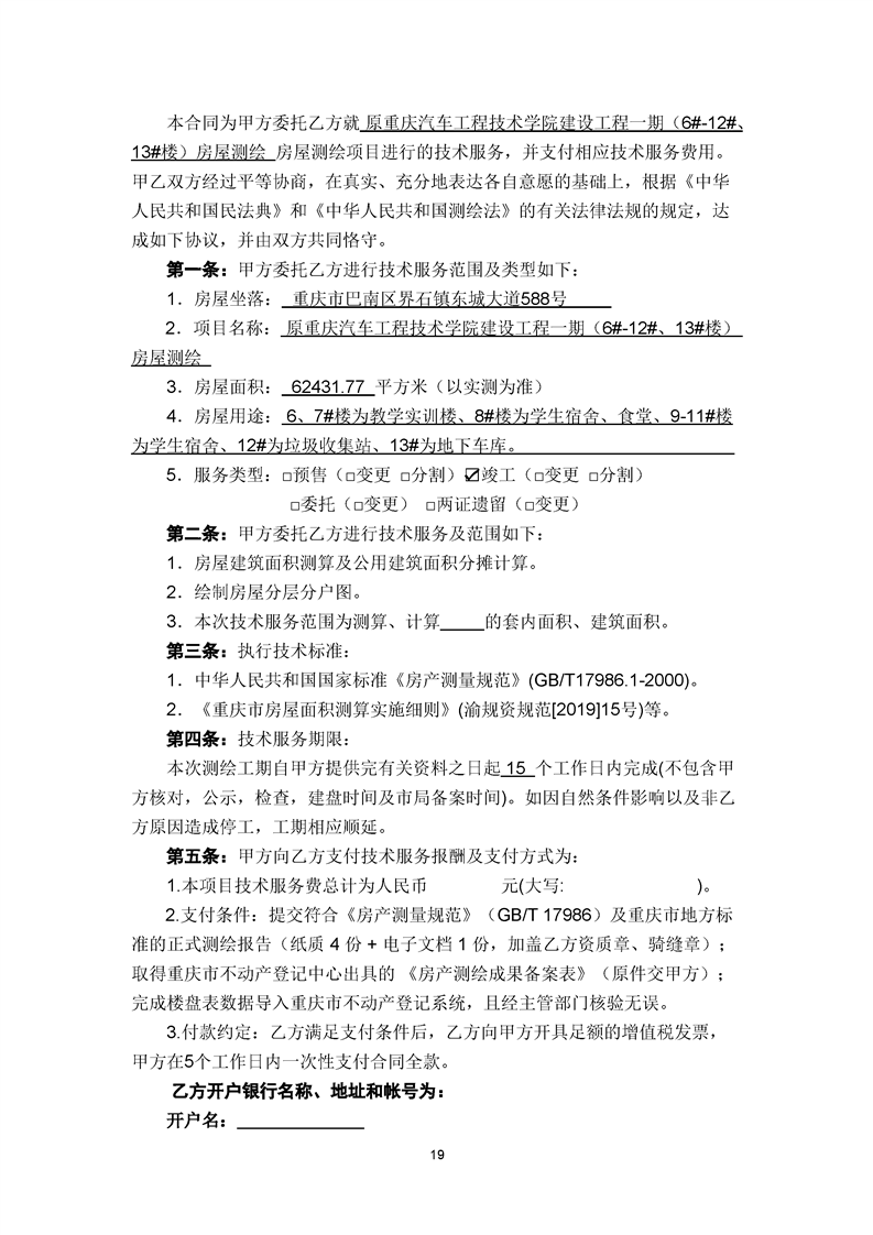 原重庆汽车工程技术学院建设工程一期(6-12#、13#楼)房屋测绘(第二次)询价文件
