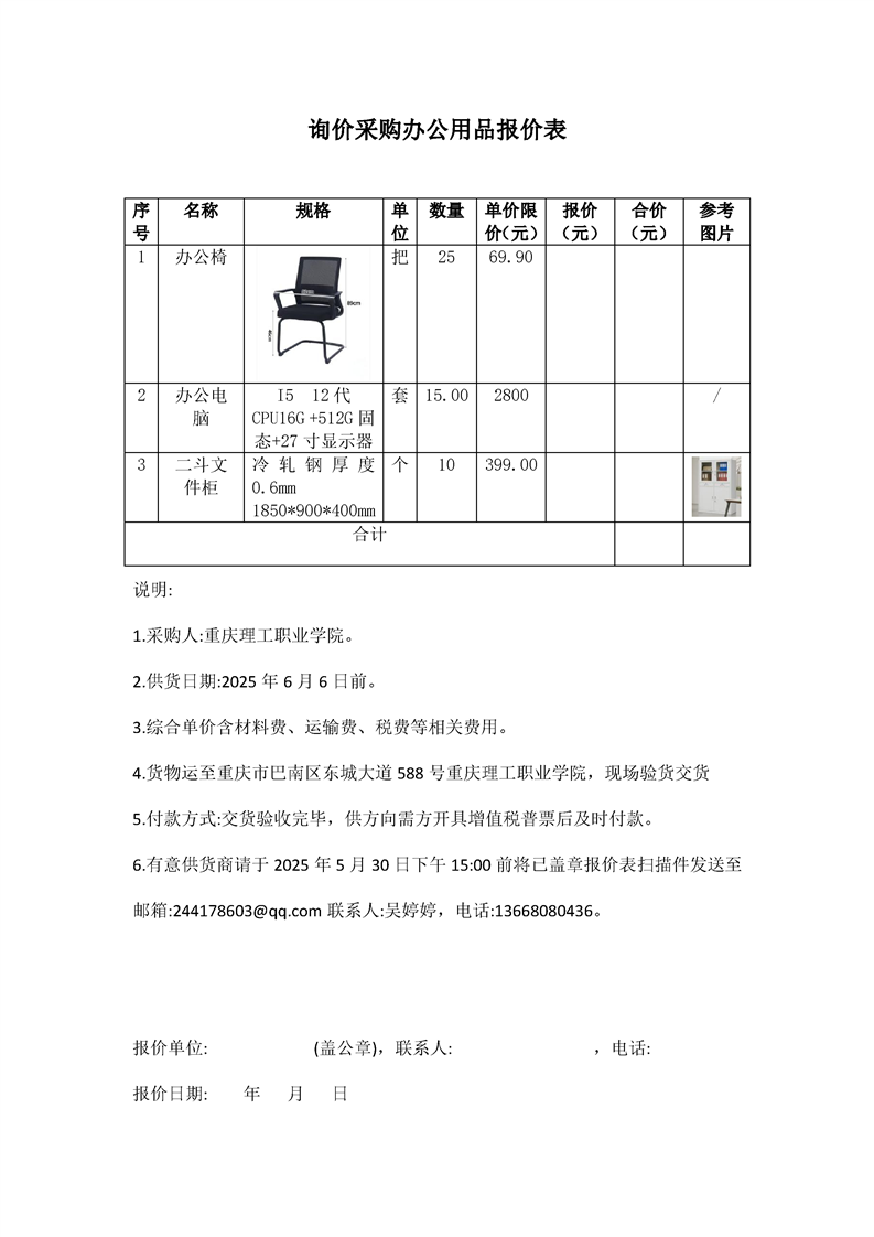 询价采购办公用品公告