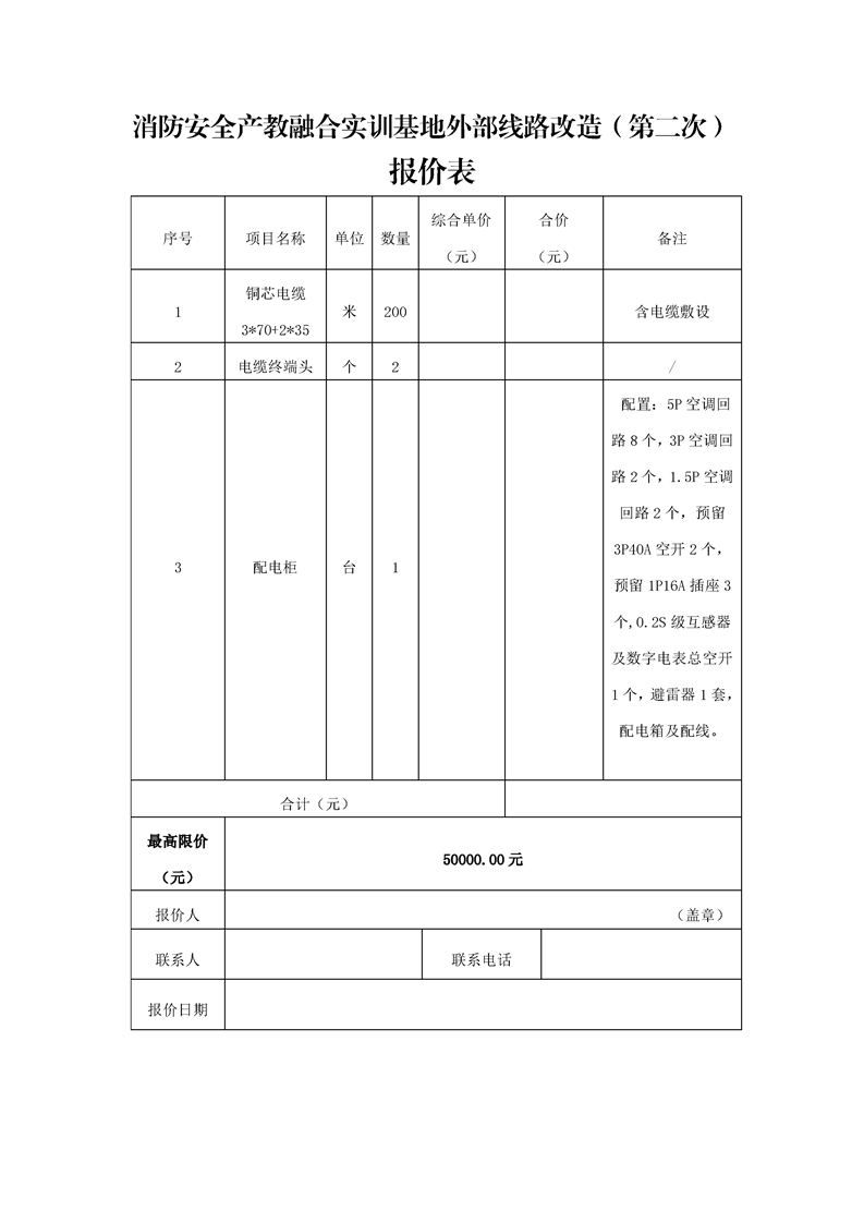 消防安全产教融合实训基地外部线路改造(第二次)询价公告