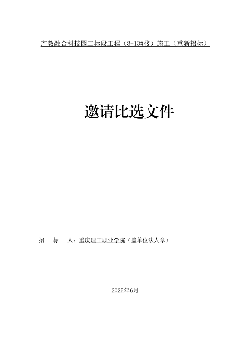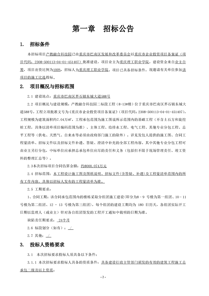 产教融合科技园二标段工程(8-13#楼)施工(重新招标)招标公告
