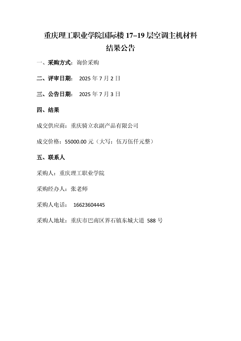 beat365英国官网网站国际楼17-19层空调主机材料结果公告
